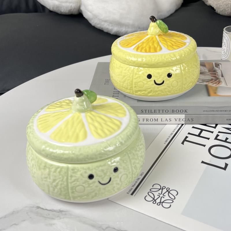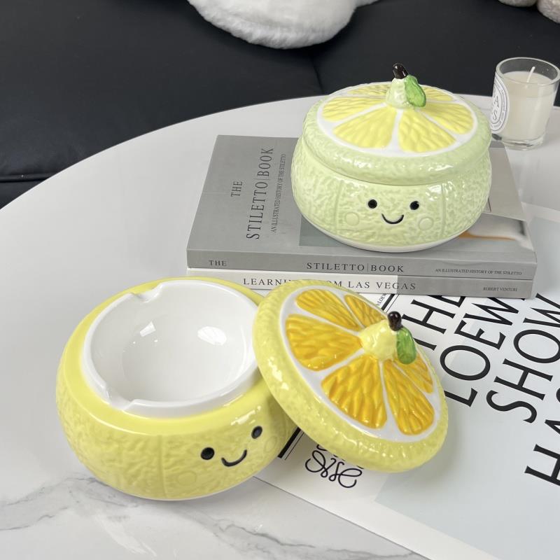 创意陶瓷可爱柠檬烟灰缸家用客厅桌面餐厅茶几办公室防飞灰烟缸