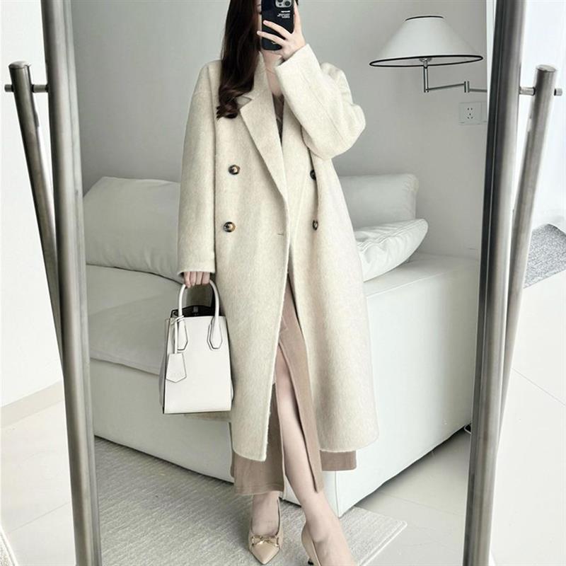 现货燕麦色双面羊绒大衣女小个子秋冬季中长款过膝高级感羊毛呢子