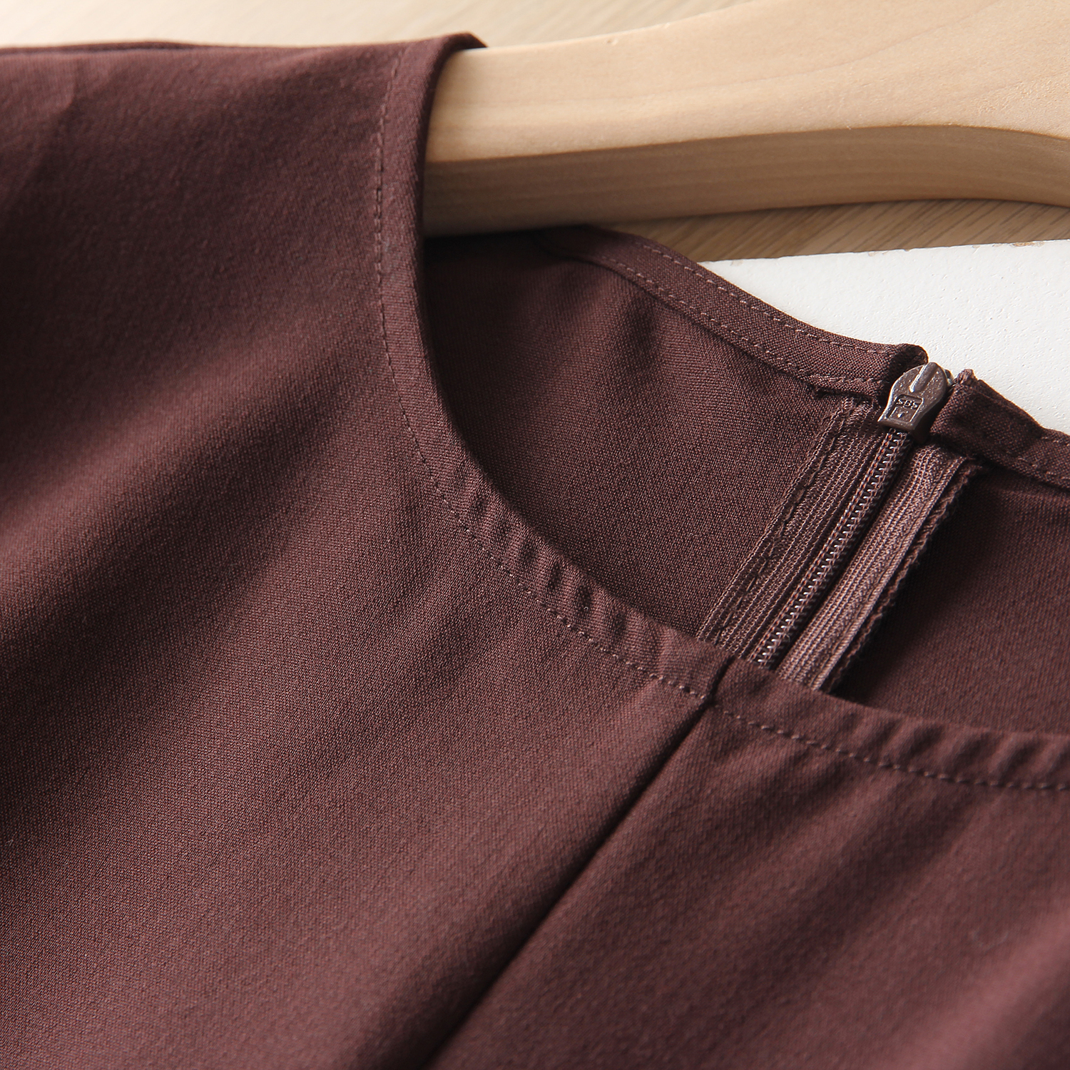 收腰圆领短袖亚麻连衣裙女T恤裙