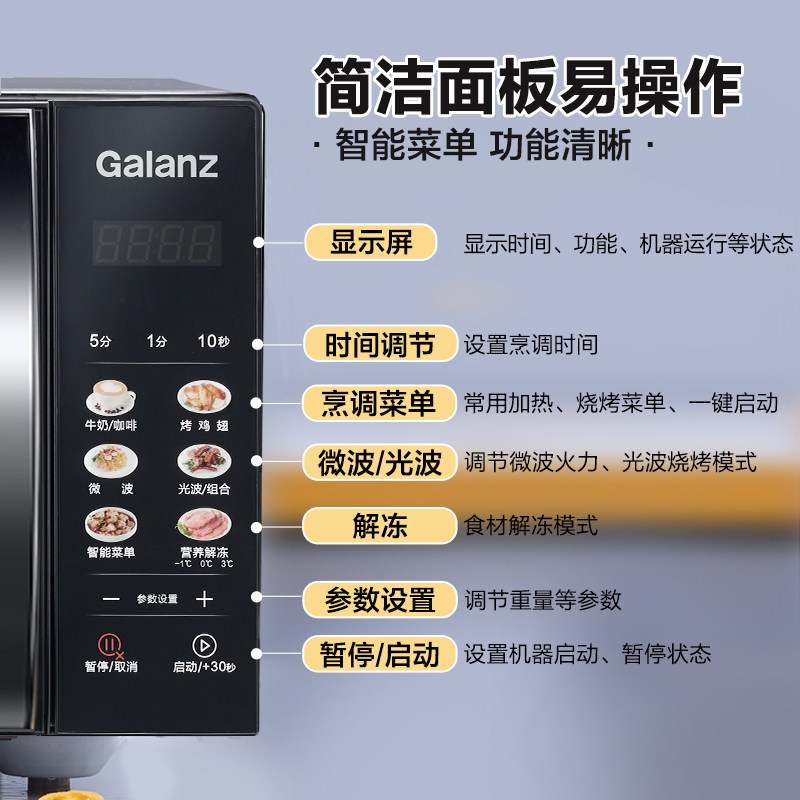 政府补贴格兰仕微波炉家用小型新款智能彩膜不锈钢微烤一体机官方