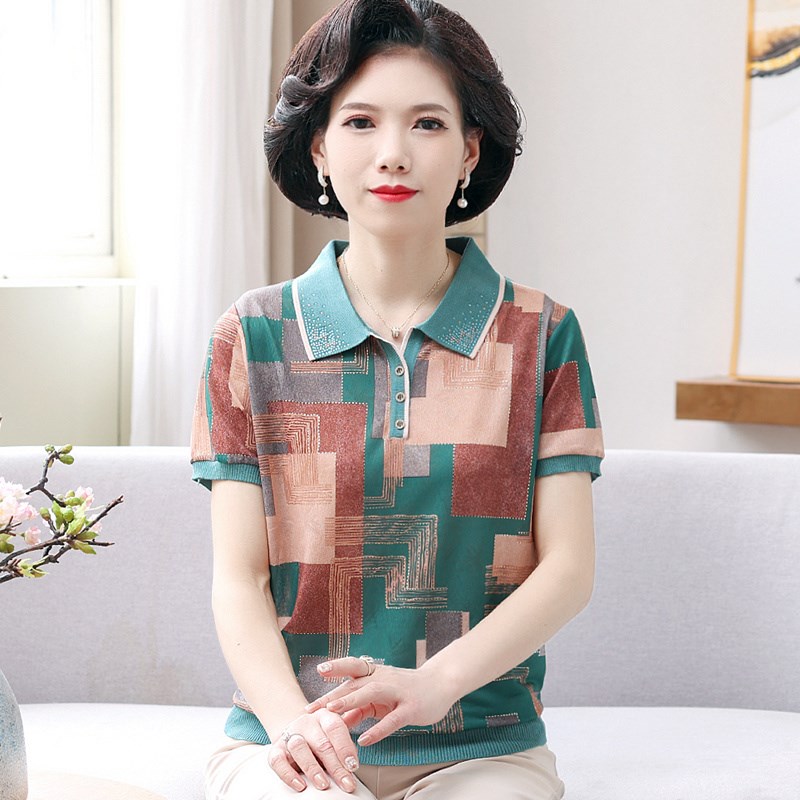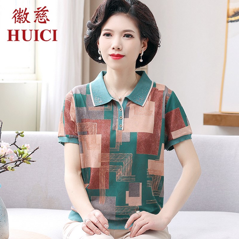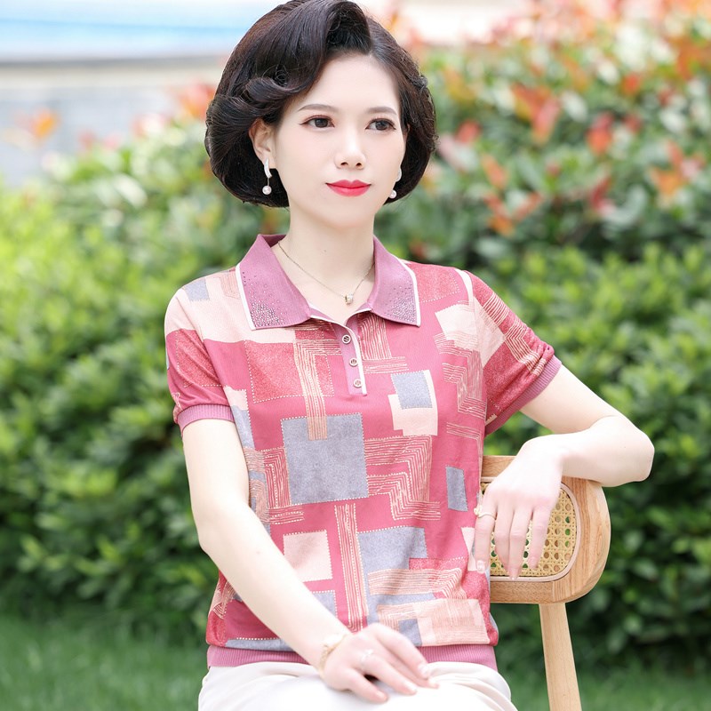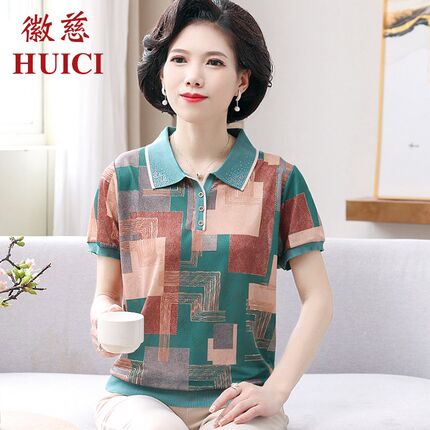 50岁中年妈妈装夏装短袖T恤洋气质 中老年女装时尚夏款宽松上衣服