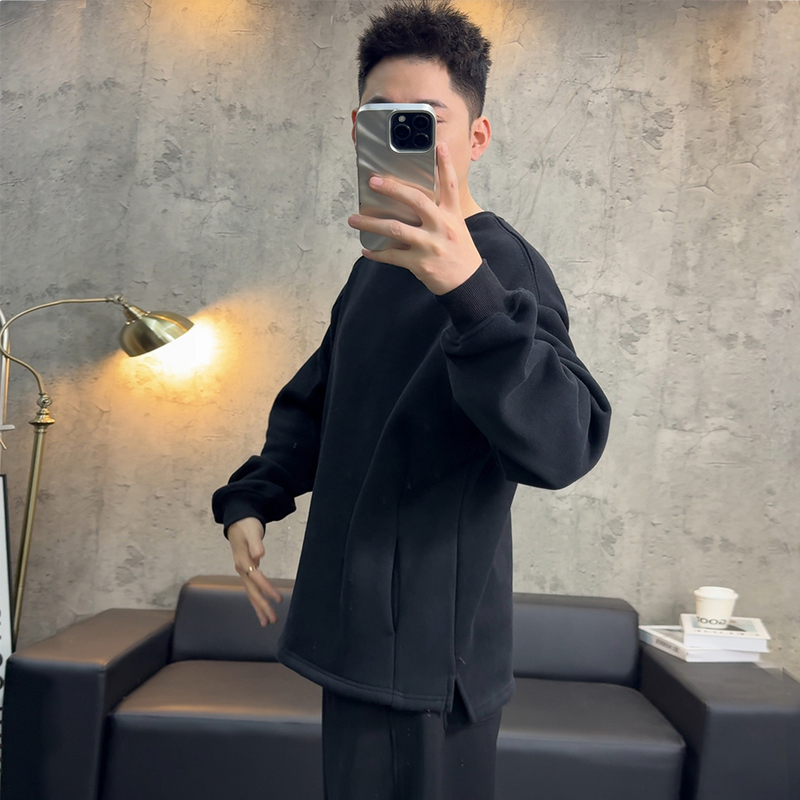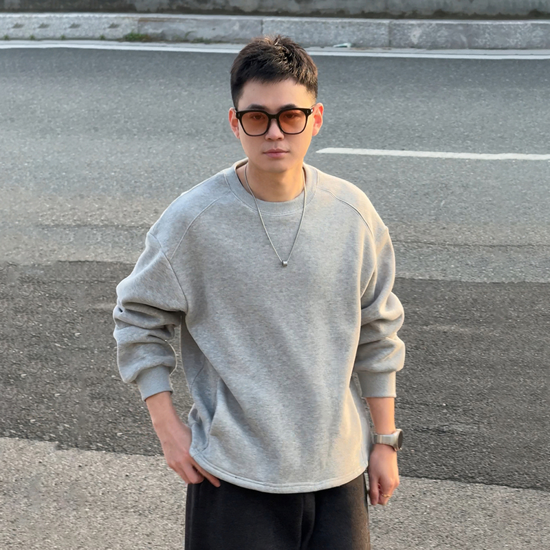 Cleanfit重磅加厚美式卫衣男春秋款加绒纯色圆领套头长袖T恤上衣