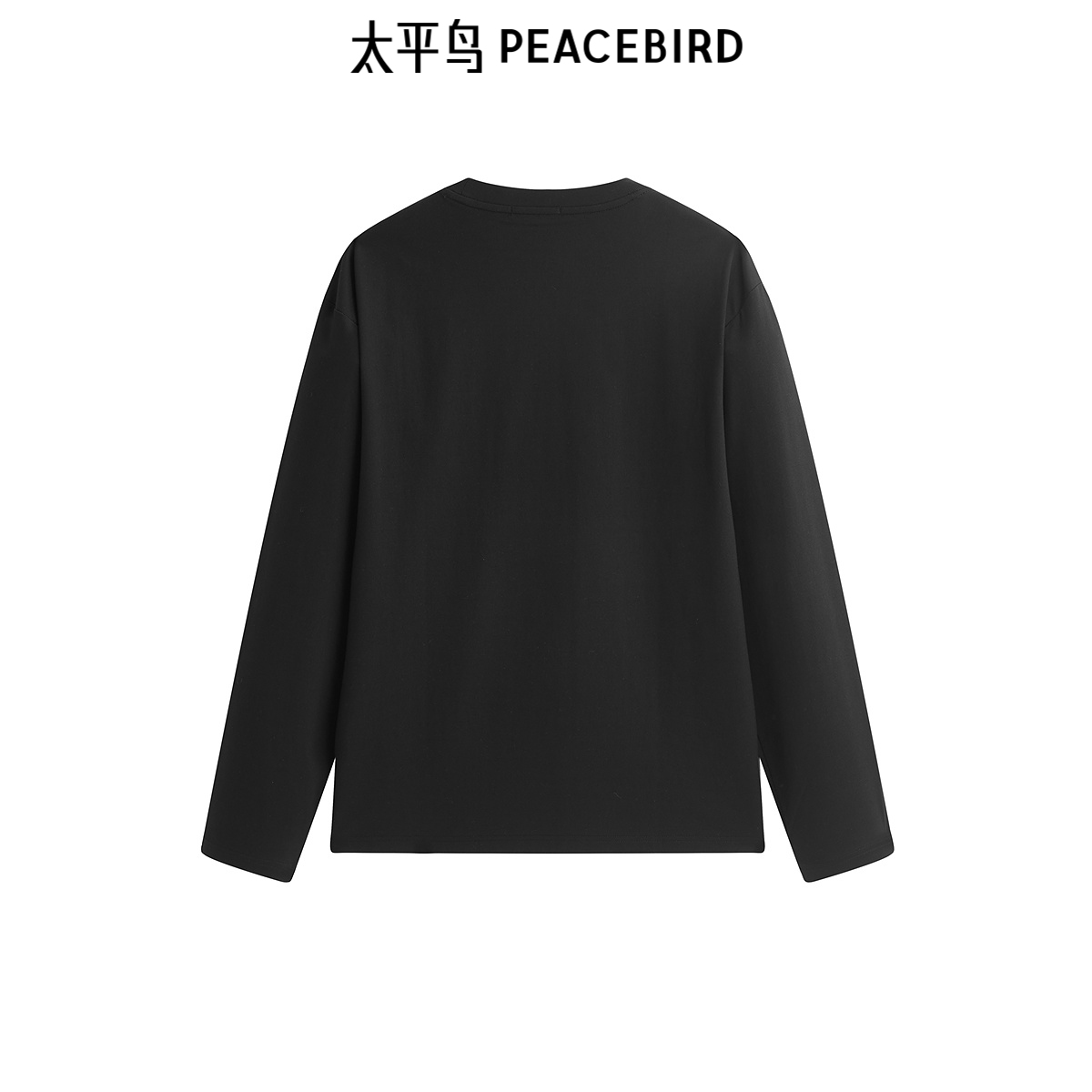 太平鸟男装重磅撞色刺绣长袖T恤秋季宽松时尚潮流打底衫