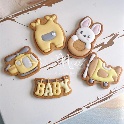 小miu老师宝宝周岁主题饼干模 baby生日甜品台伴手礼糖霜辅助工具