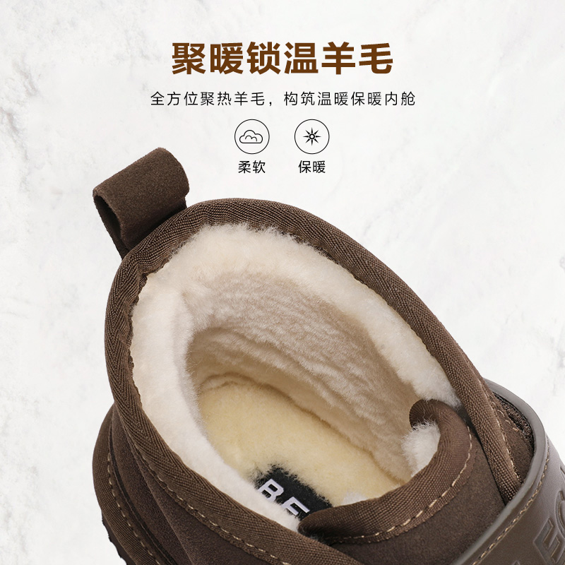 百丽男鞋雪地靴冬季羊毛加绒东北靴棉鞋高帮保暖加绒靴子A1322DD3