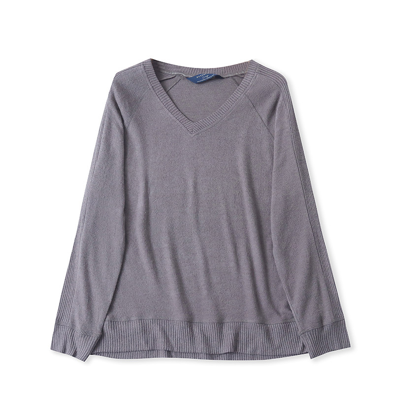 HH7898外贸欧美单女装针织衫新款V领套头宽松纯色百搭时尚毛衣