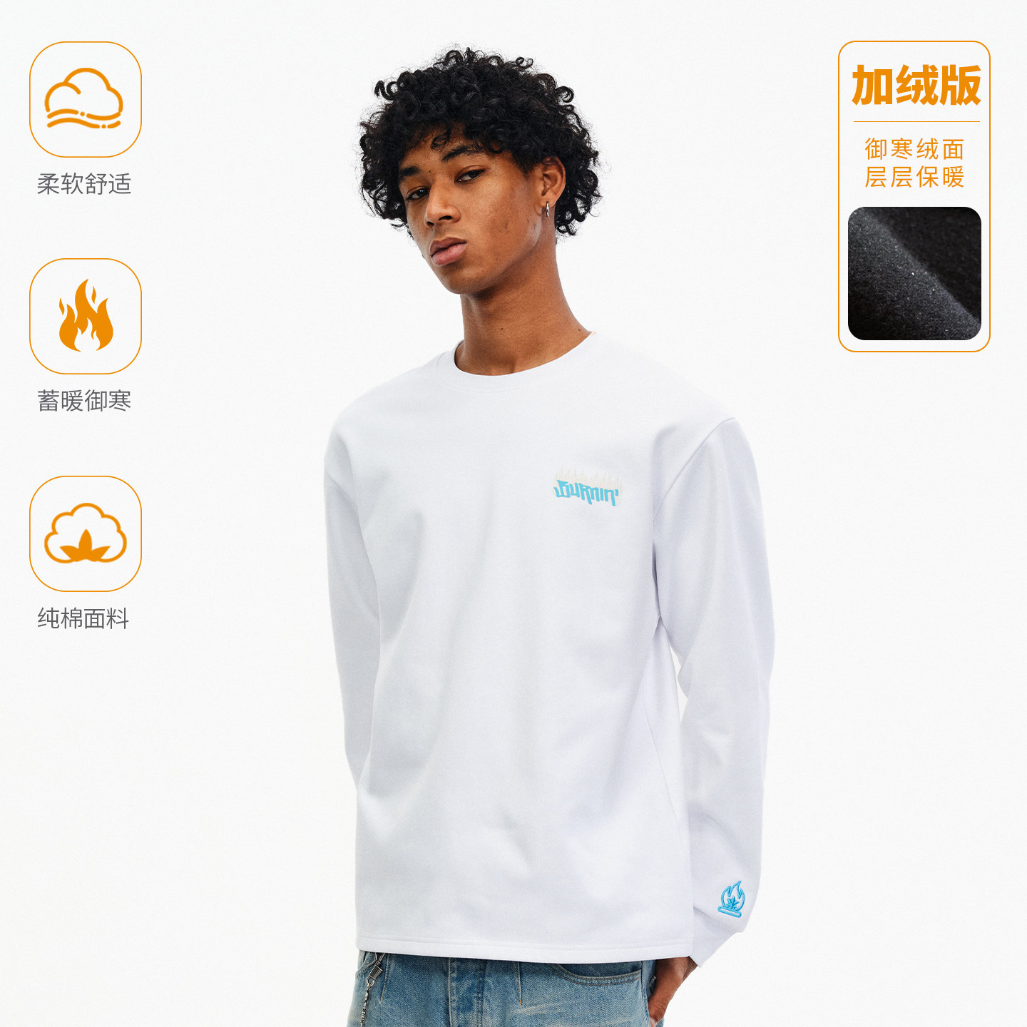 BURNIN*小火苗火焰横排长袖T恤男宽松美式街头加绒保暖打底衫上衣