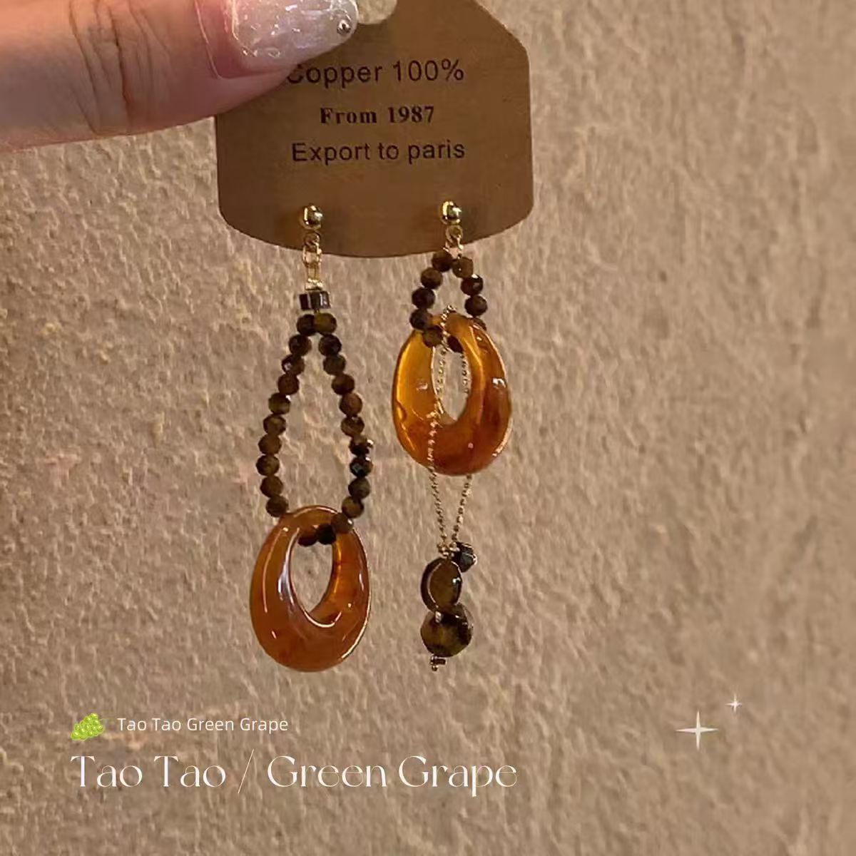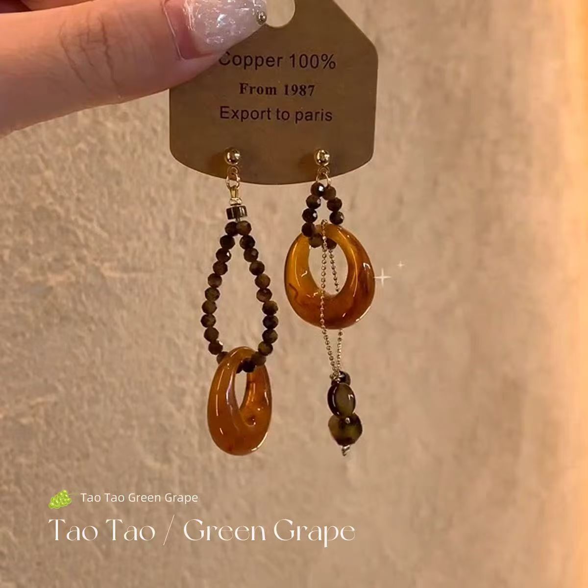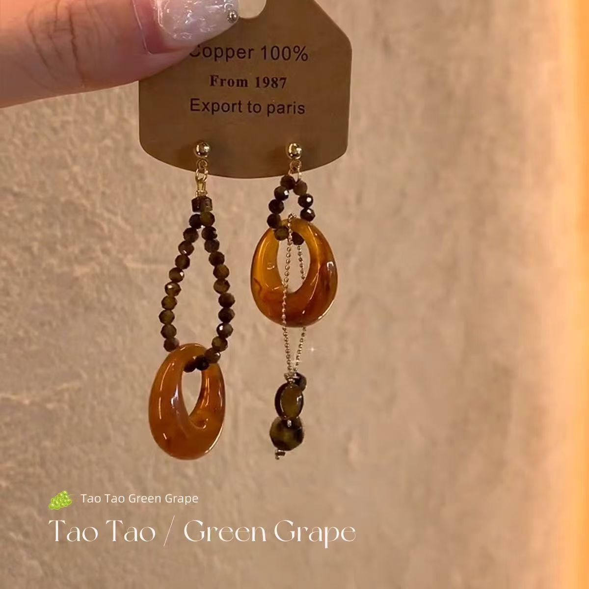 新中式复古串珠流苏耳环女秋冬2025新款不对称高级感耳饰耳钉