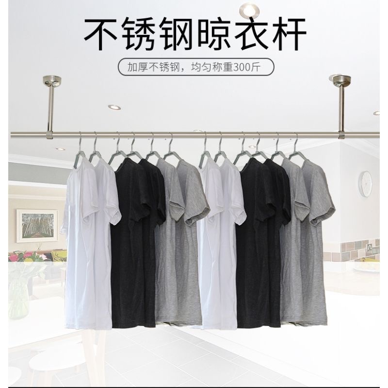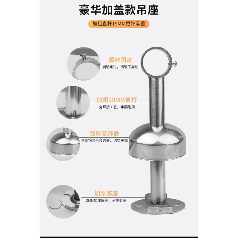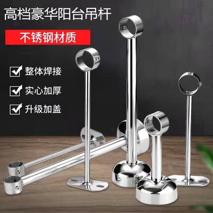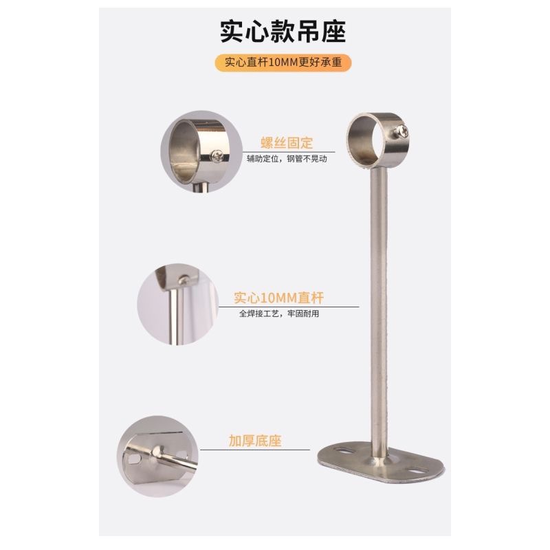 304不锈钢阳台晾衣杆加厚吊座吊通室内挂衣杆顶装固定配件晾衣架