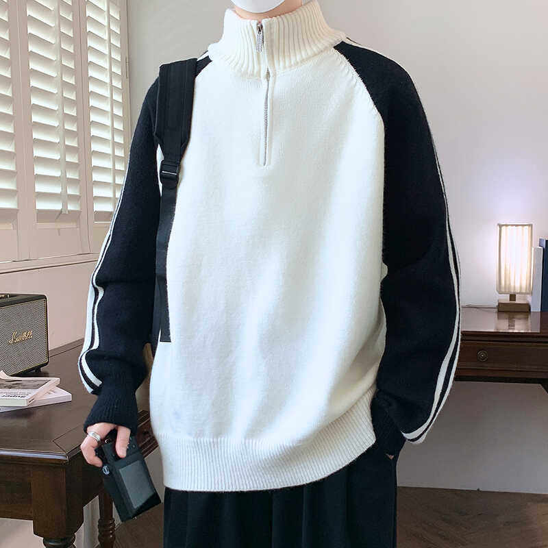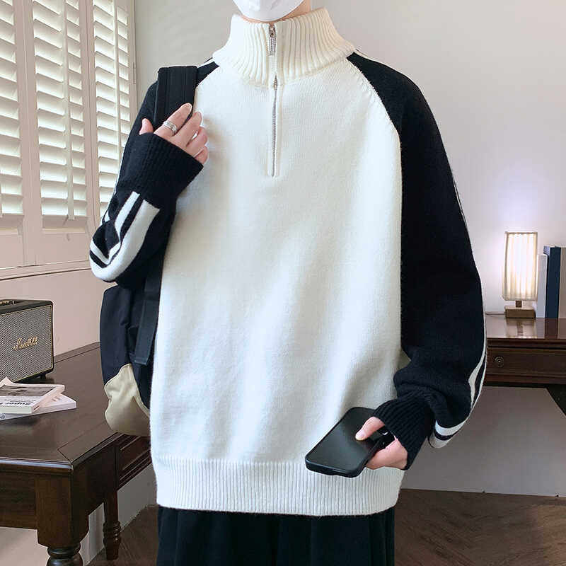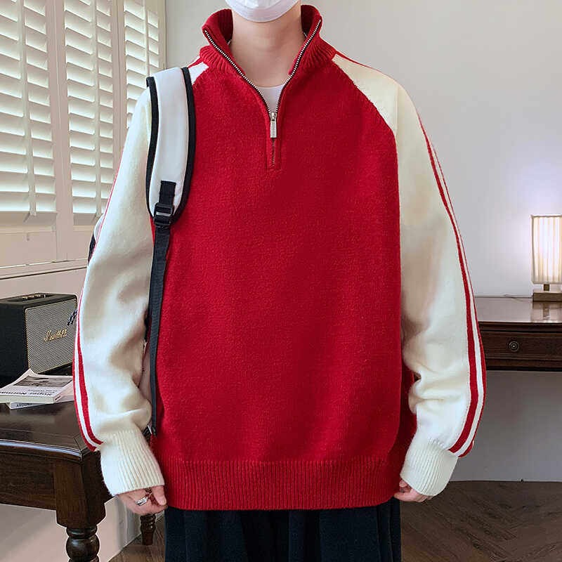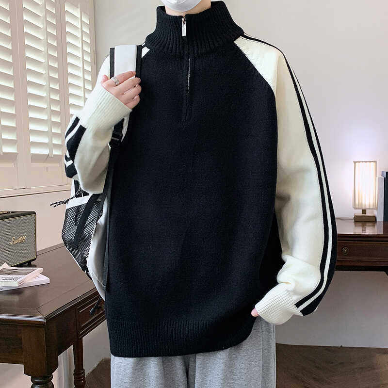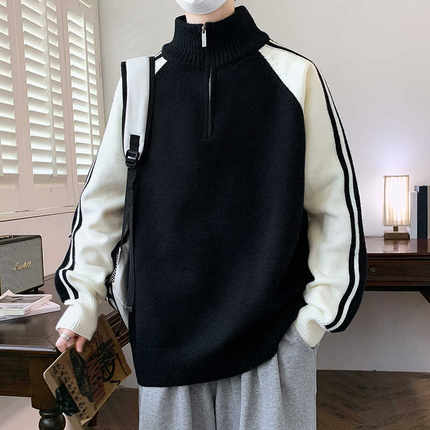 半高领拉链立领毛衣男秋冬季新款加绒加厚学生毛线衣青少年针织衫
