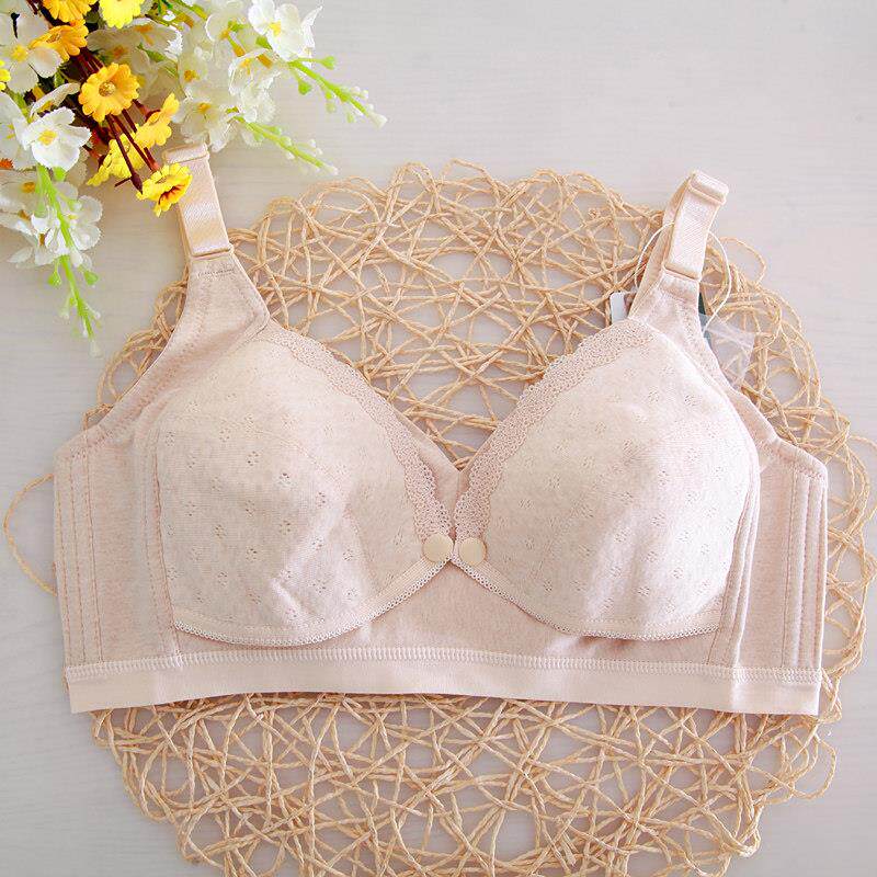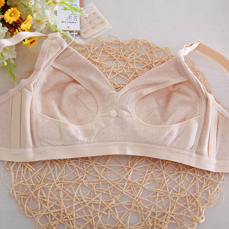 半糖棉纺孕产妇内衣纯彩棉无钢圈哺乳文胸罩前开 扣薄哺乳文胸大