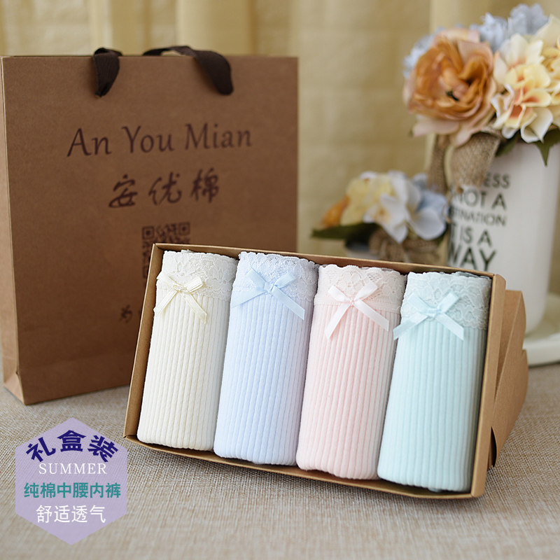 内裤女中腰纯棉100%全棉日系女生三角裤无痕女士大码舒适透气短裤