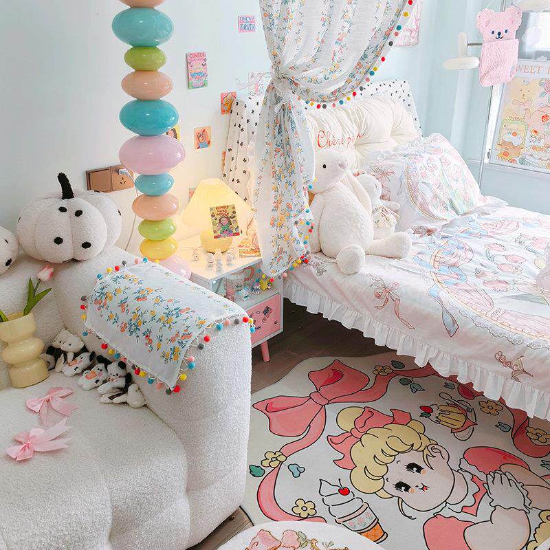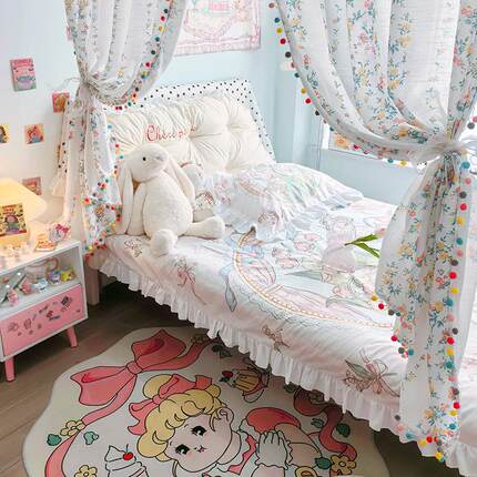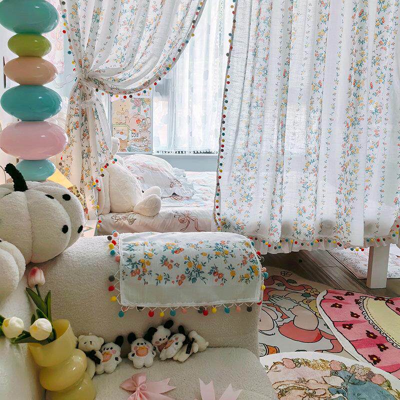卧室床对门隔断碎花布艺窗帘法式屏风女孩门帘半遮光免打孔屏风