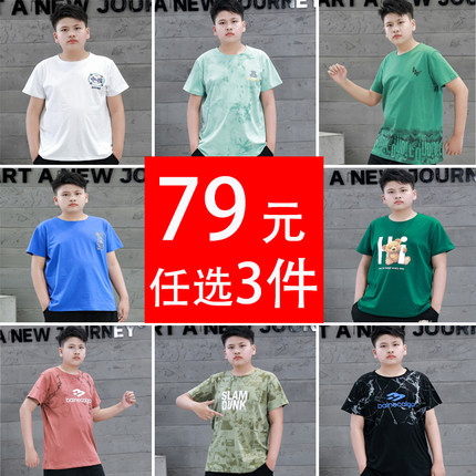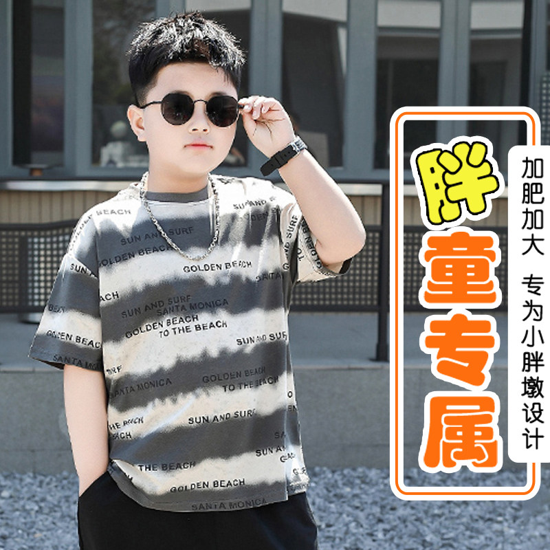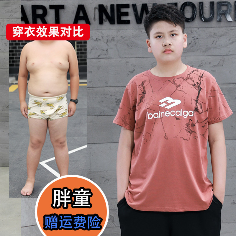 胖男童T恤加肥加大夏季运动汗衫中大童纯棉短袖宽松半袖洋气体恤9