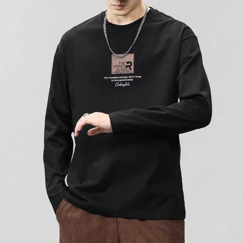 Yishion以纯官方时尚正品纯棉长袖t恤男士秋季2025新款休闲体恤打