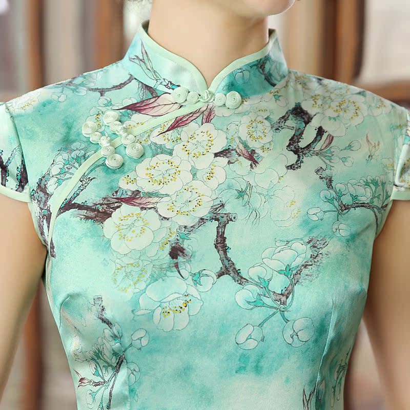 2016新款夏季改良连衣裙日常复古修身短款真丝旗袍厂家Z0039