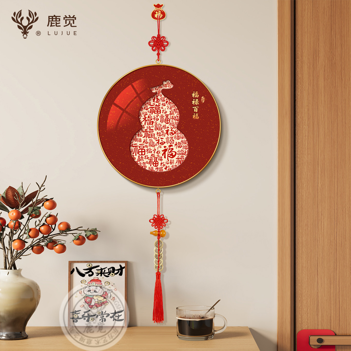 五福临门挂件入户门玄关柜挂饰新中式百福葫芦寓意好客厅新年挂画