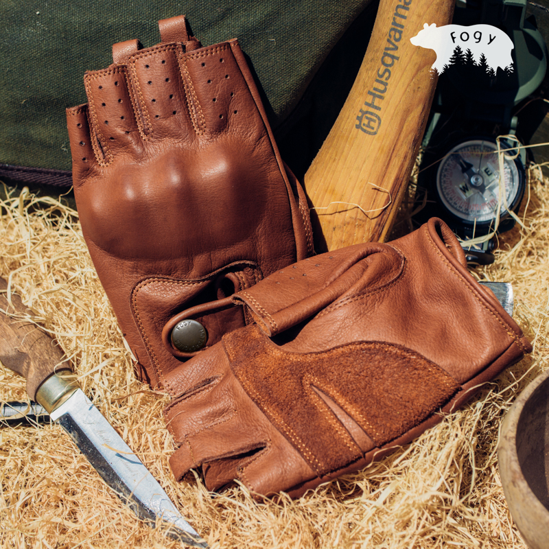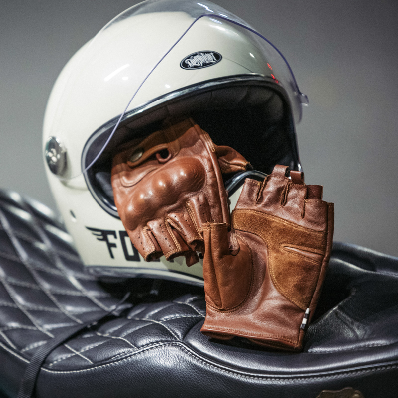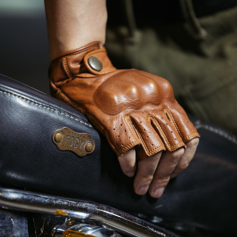 福禄车库 复古半指摩托车手套夏季薄款透气牛皮哈雷骑行防摔手套