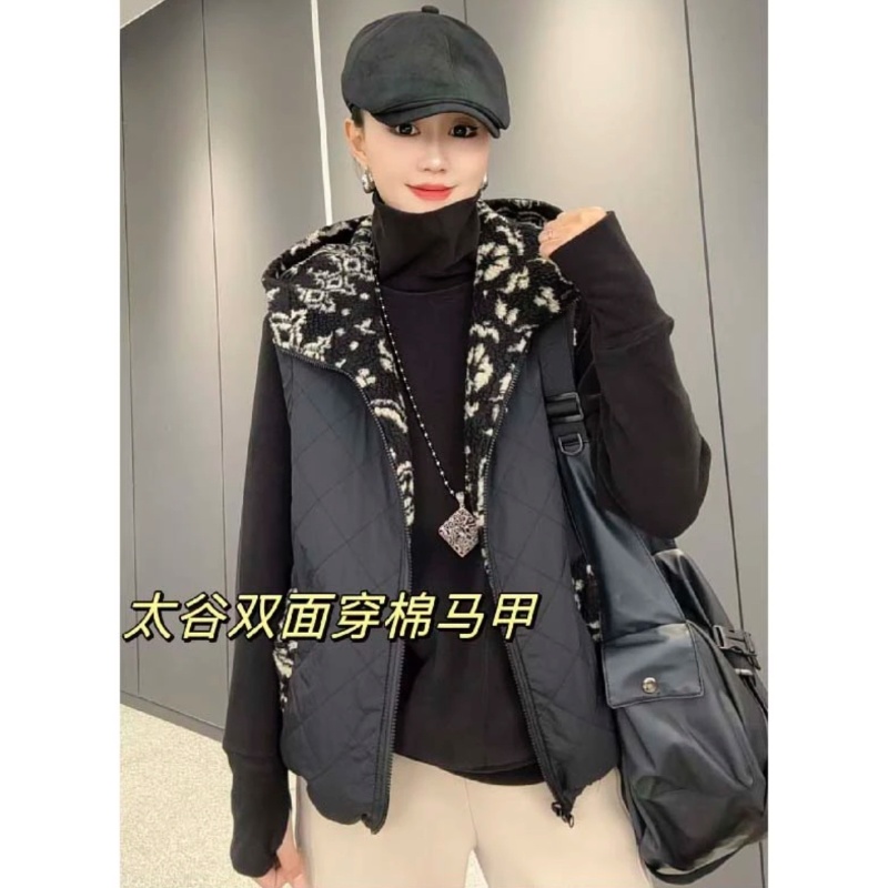 两面穿加棉加厚马甲女2024冬季新款时尚休闲百搭宽松保暖连帽棉衣