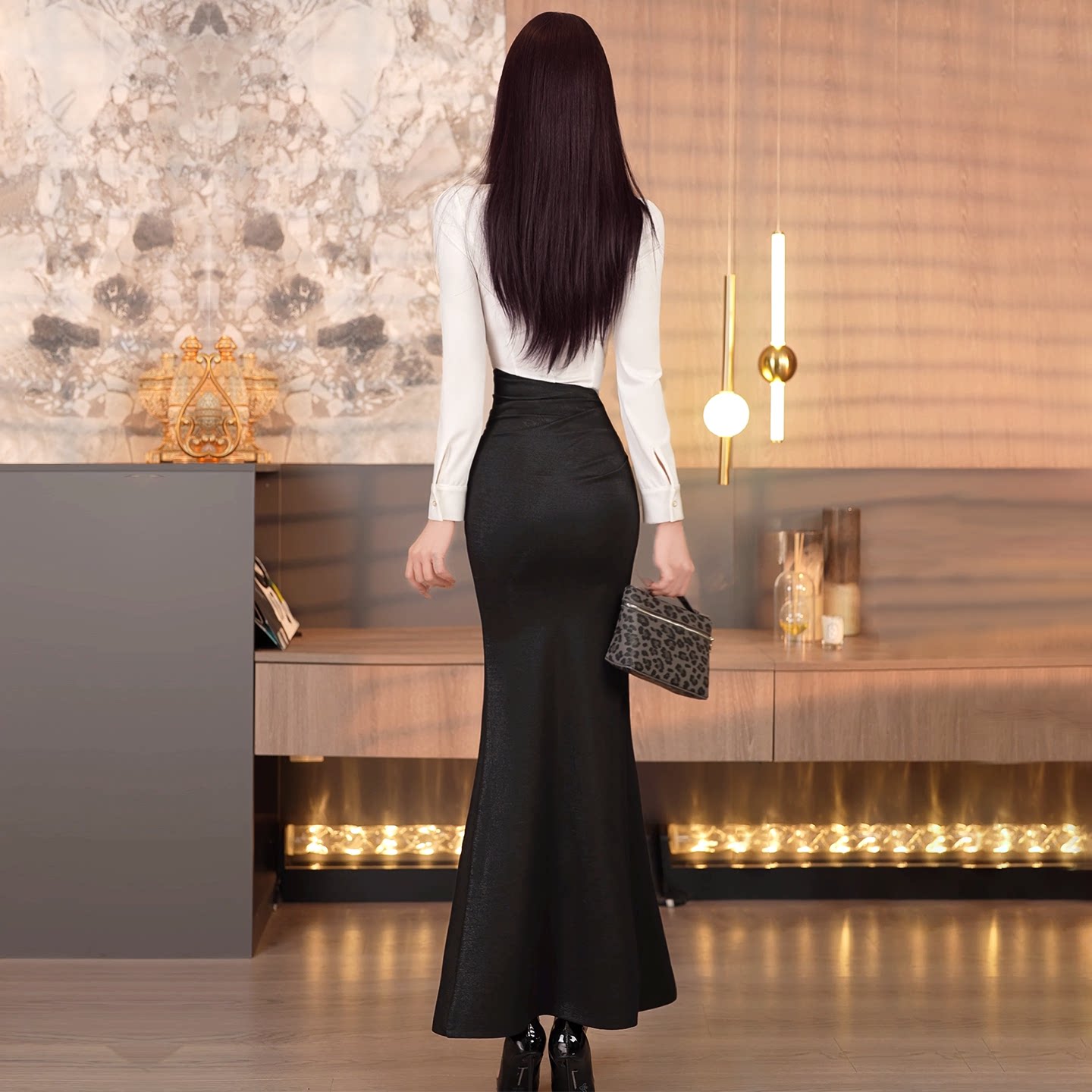 VJE早春气质法式黑色半身裙2026新款高腰显瘦中长款过膝鱼尾裙