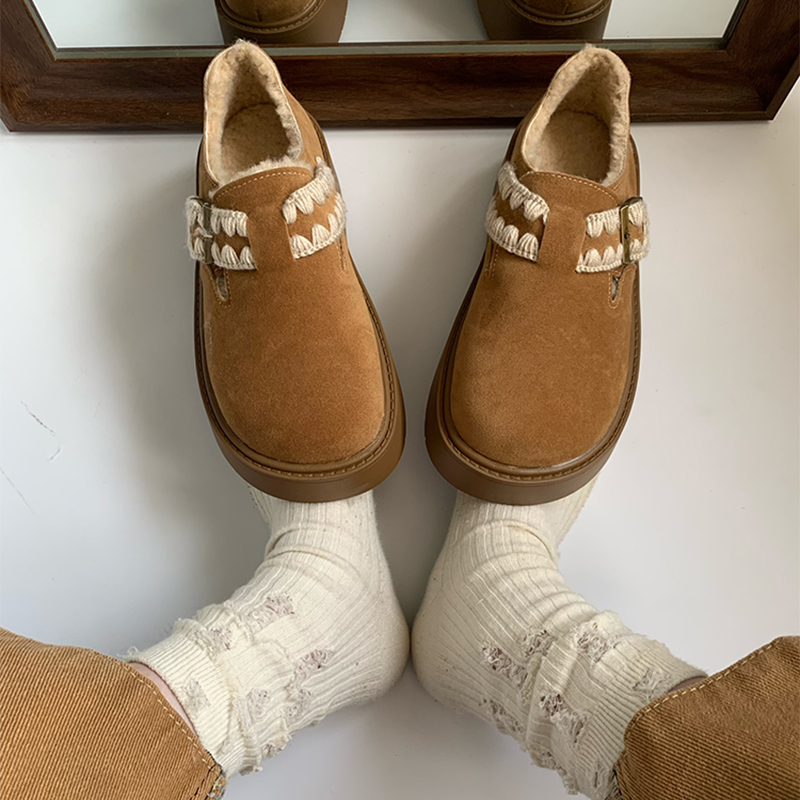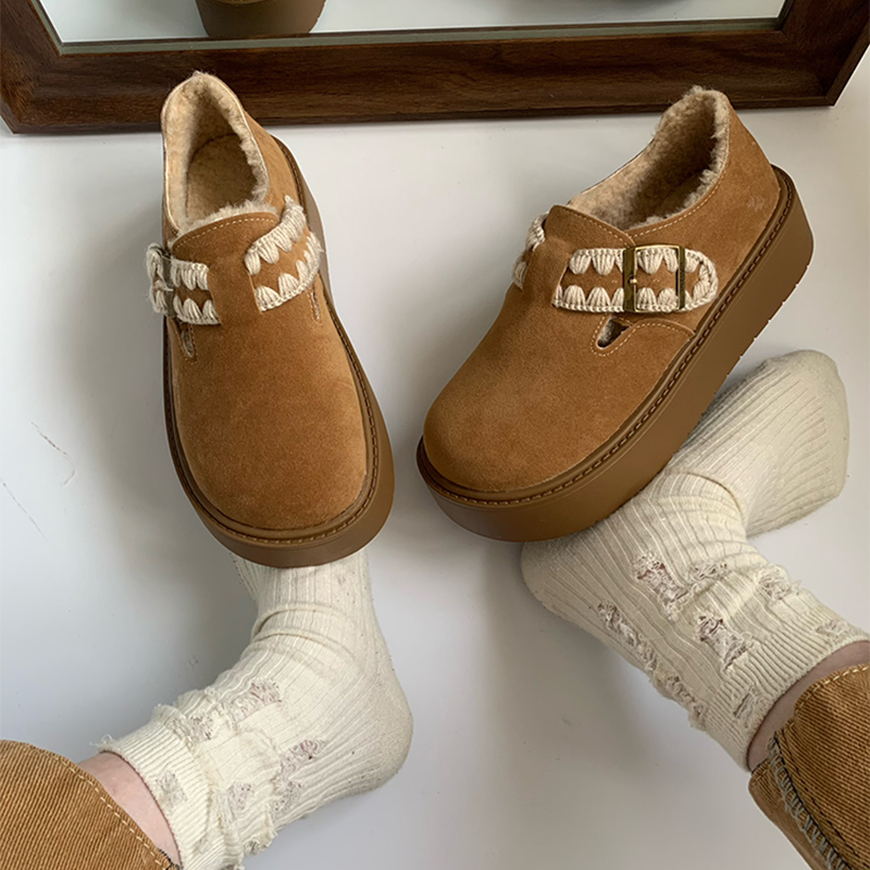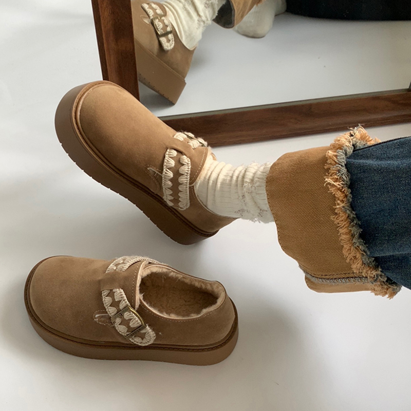 厚底增高雪地靴女款2025秋新款加绒保暖勃肯鞋圆头东北面包棉鞋子