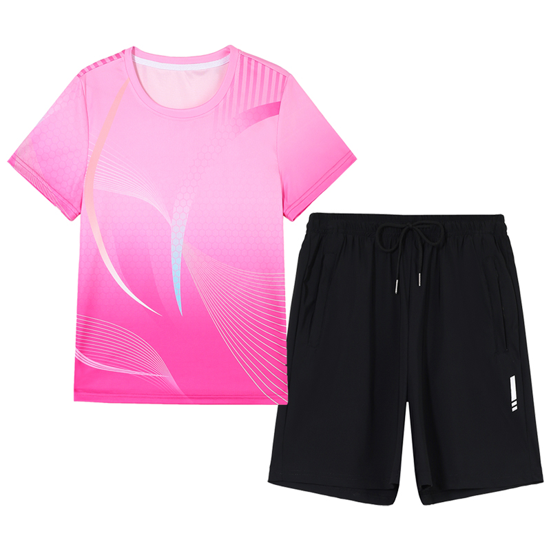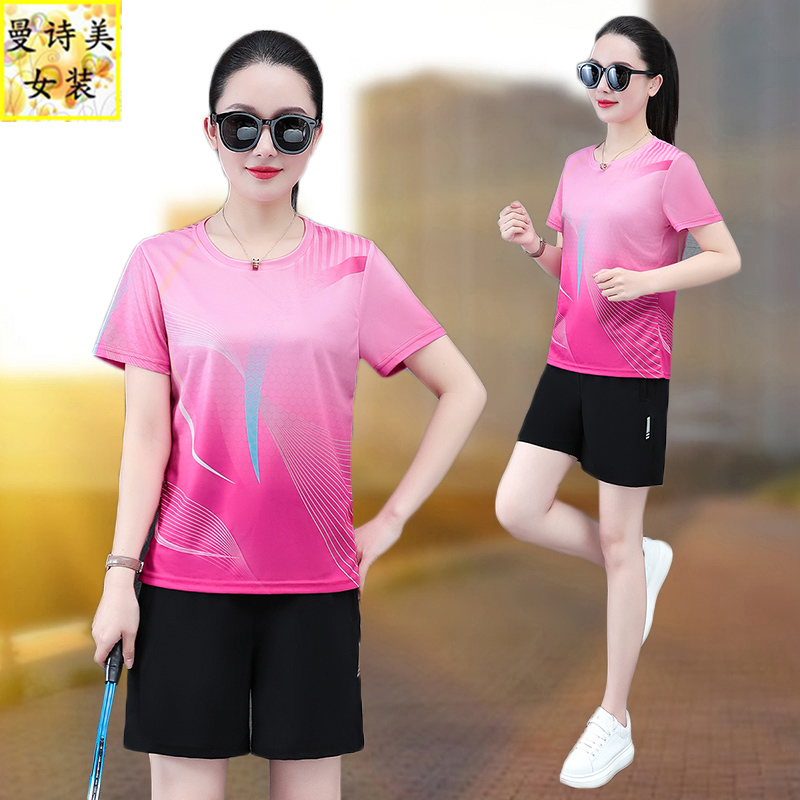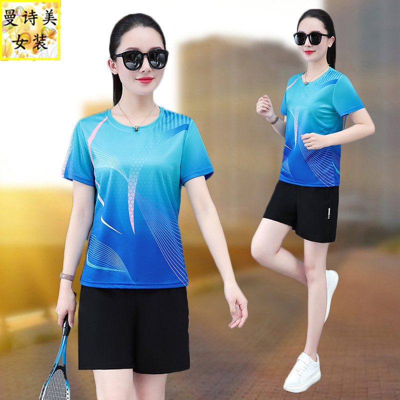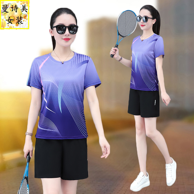 短袖短裤运动套装女士2025新款夏季宽松冰丝速干羽毛球休闲两件套