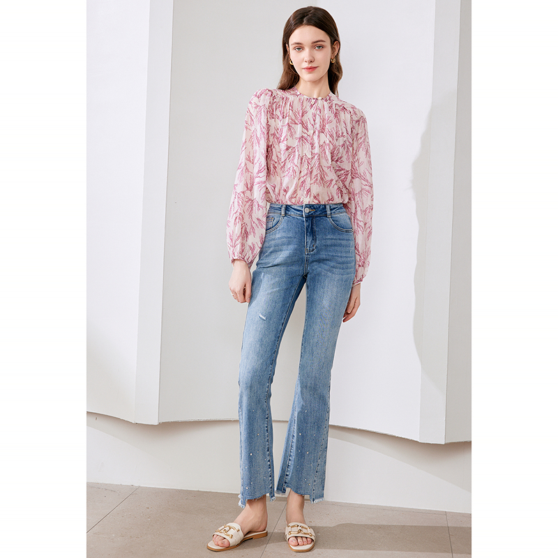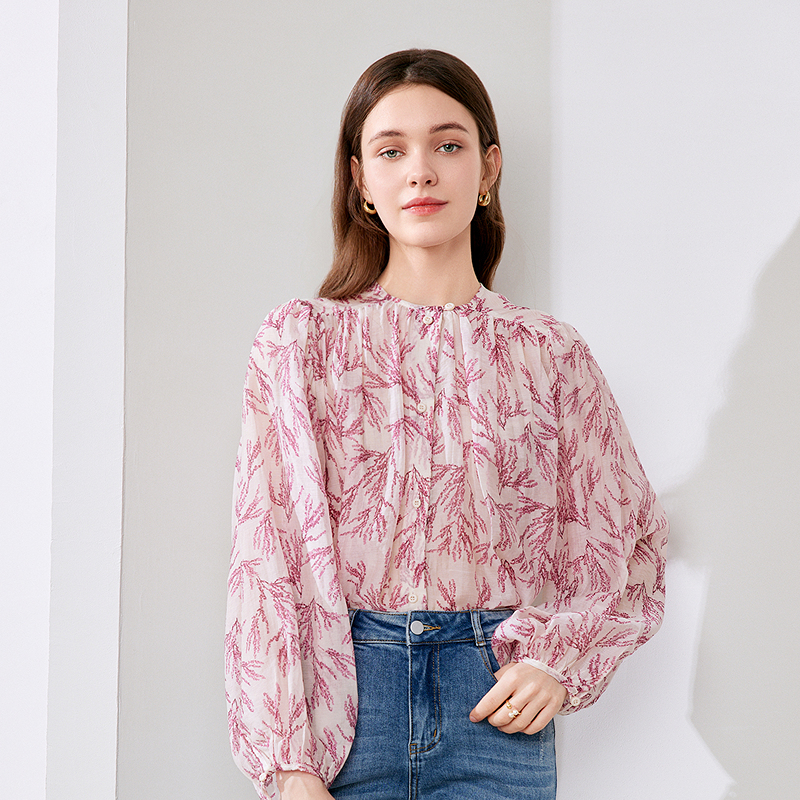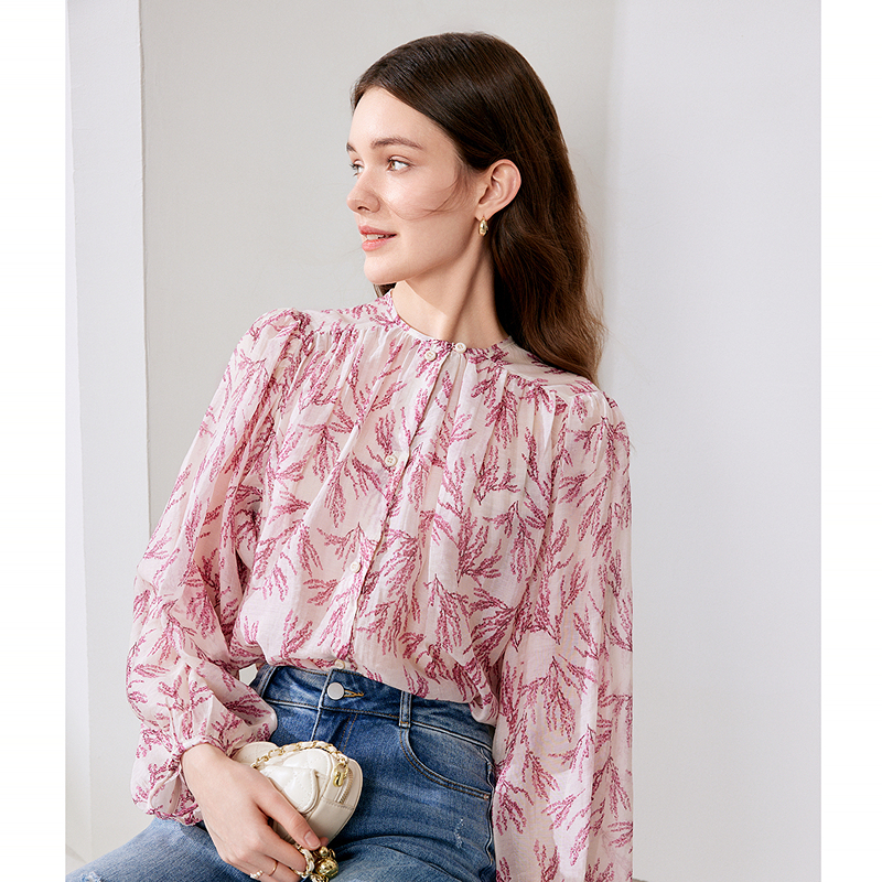 betu百图女装2025年夏季新款法式甜美粉色印花宽松衬衫衬衣上衣