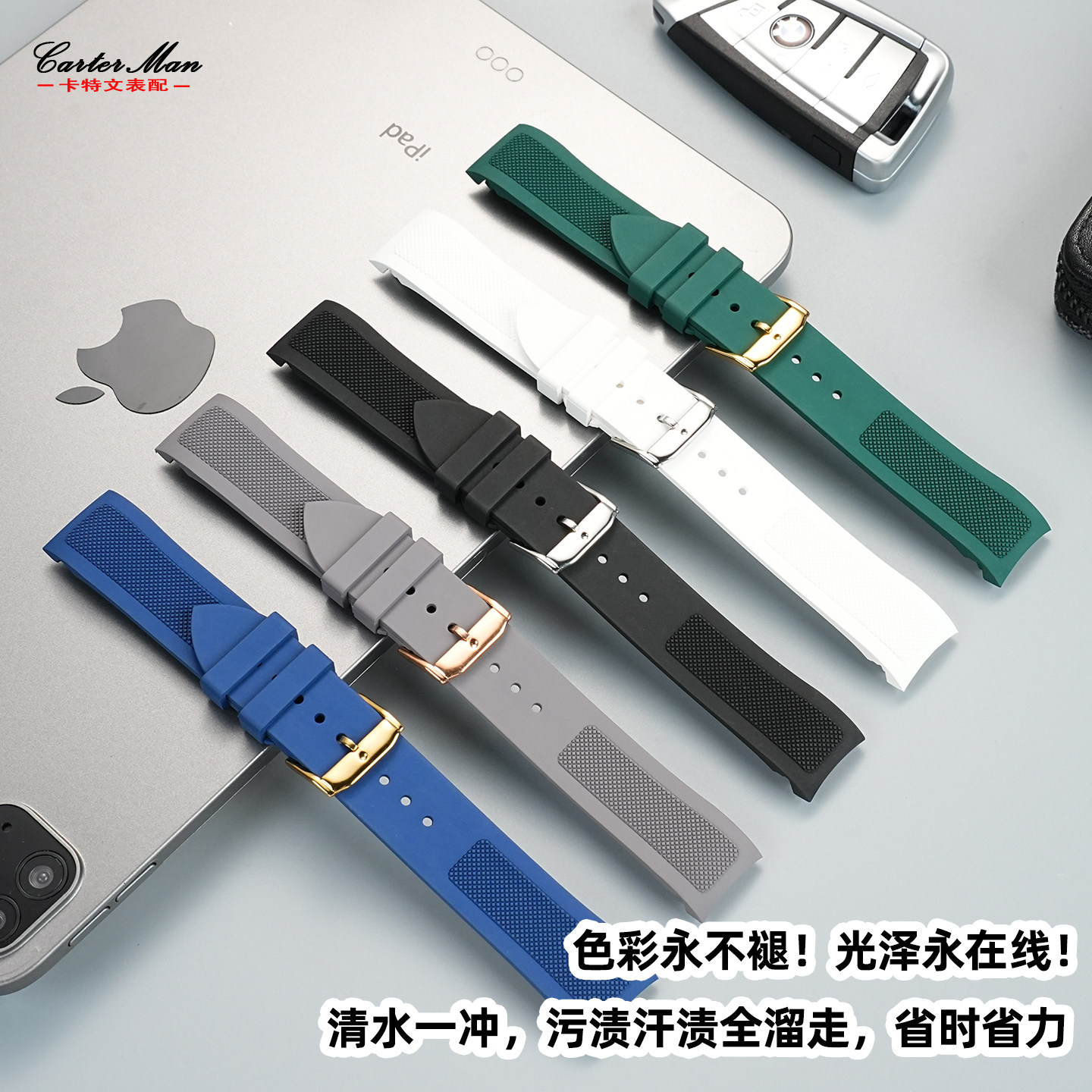 卡特文适配天梭力洛克氟橡胶T41/T006弧形手表带1853男士腕带19mm