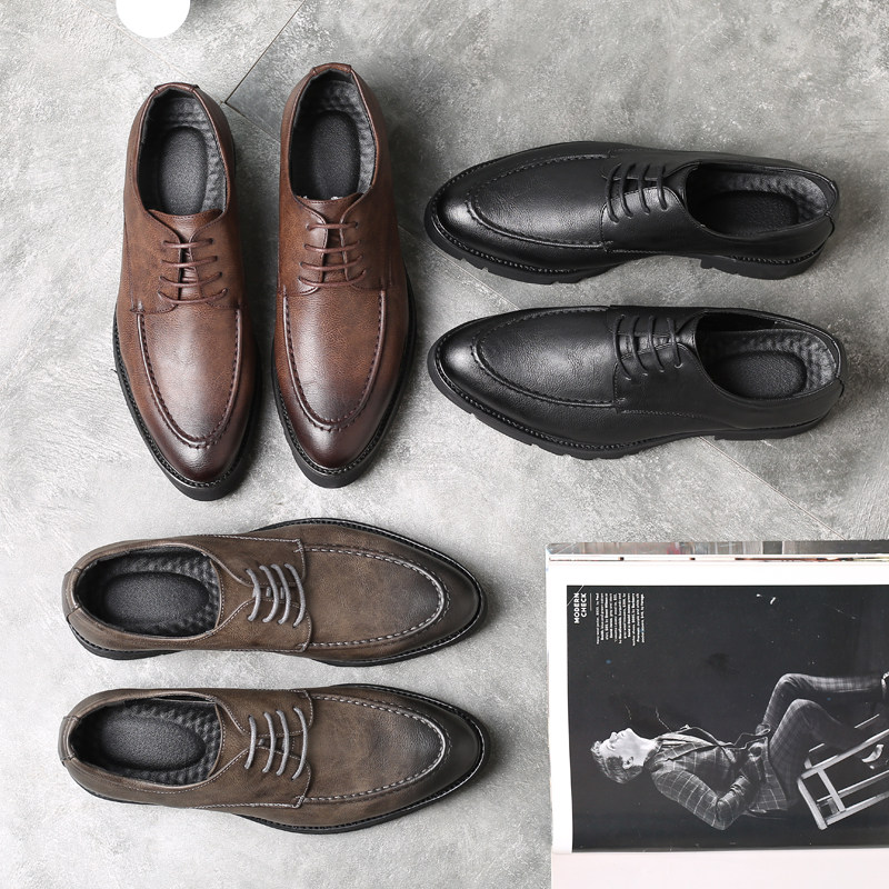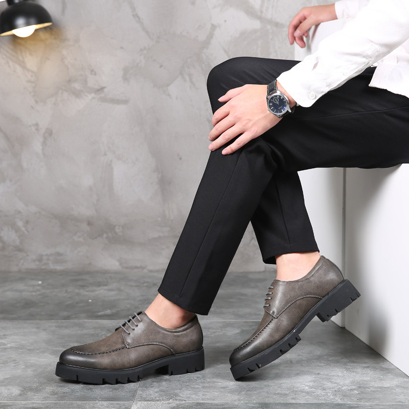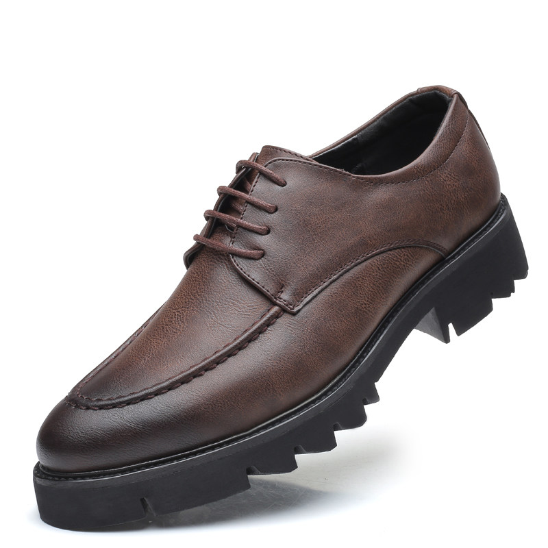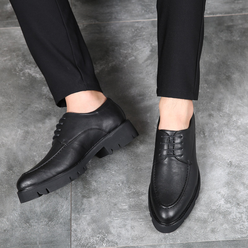 秋季透气商务正装厚底皮鞋男士韩版休闲内增高英伦尖头黑色皮鞋男