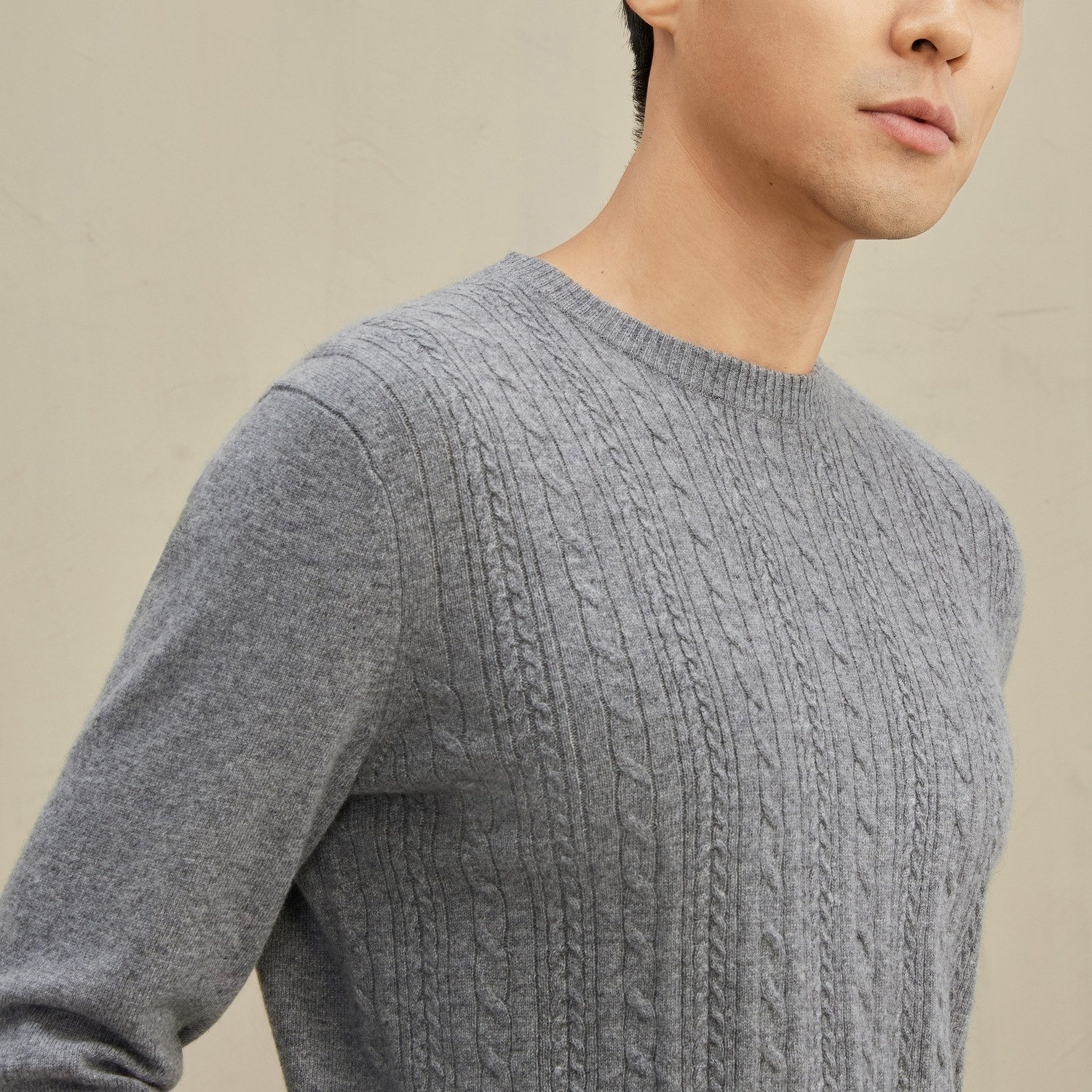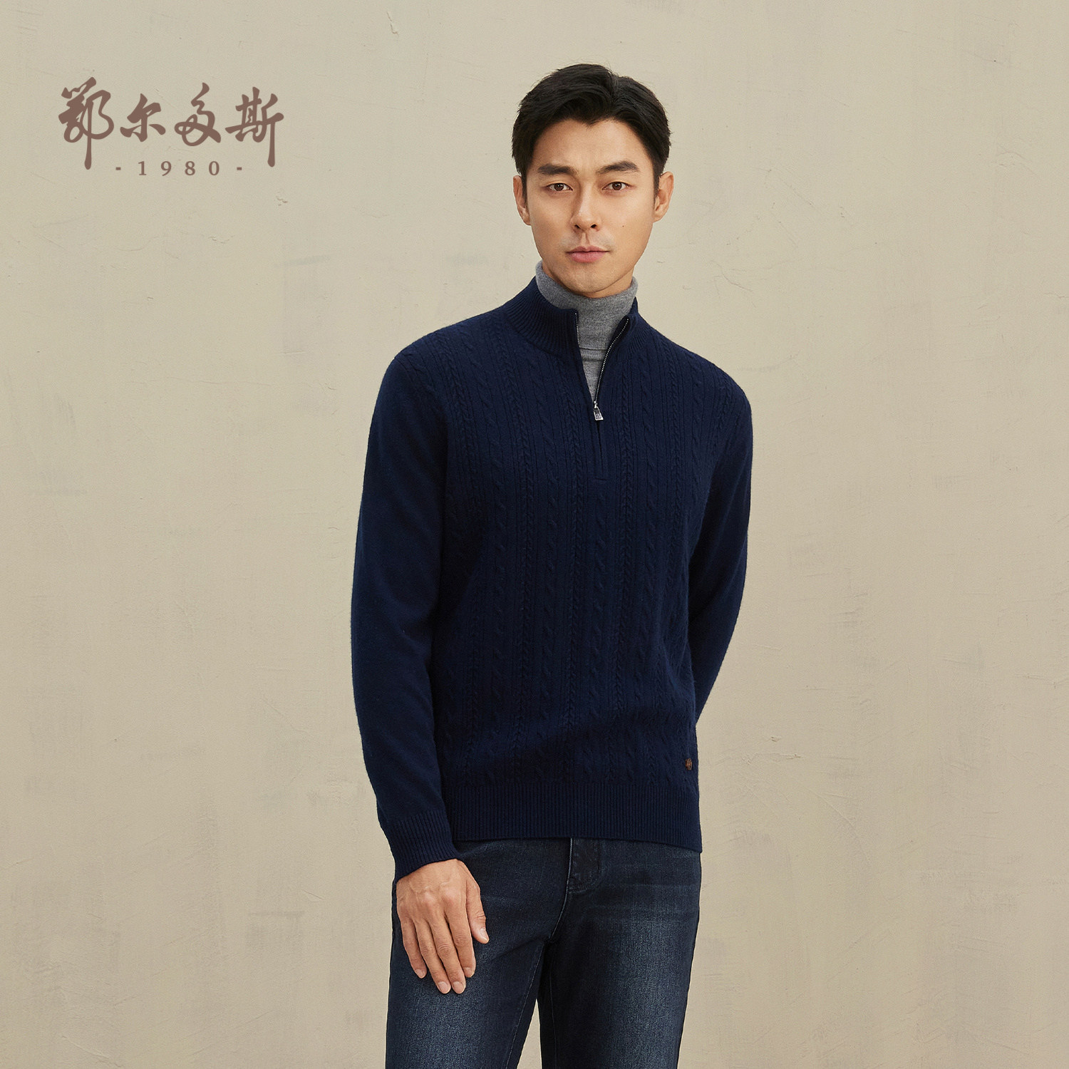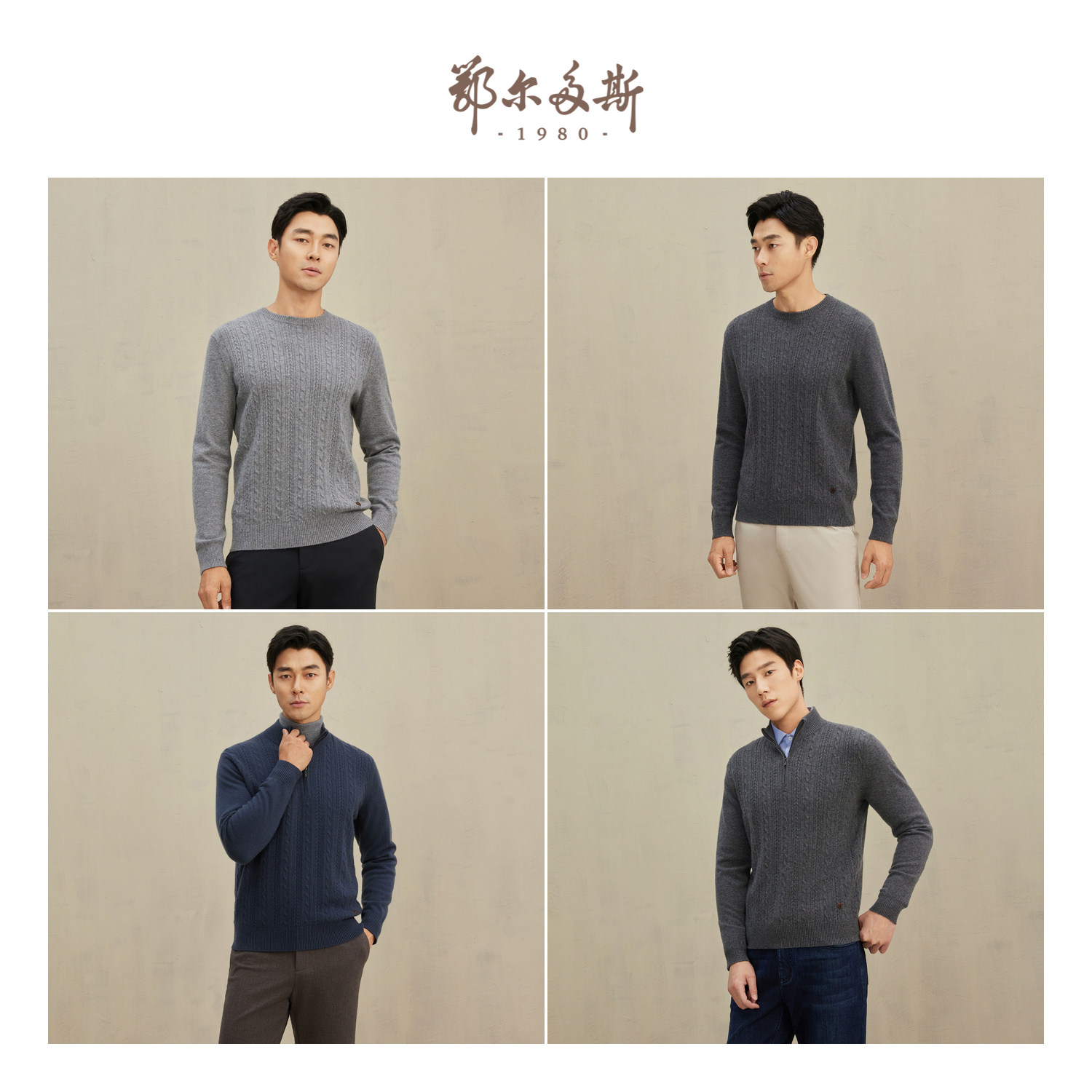 鄂尔多斯1980 圆领/半高领绞花羊绒衫秋冬复古商务男针织衫