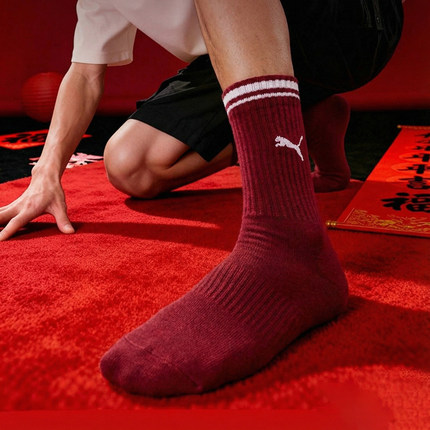 PUMA彪马红色袜子26新年款男袜女袜新款官方正品条纹长袜休闲袜