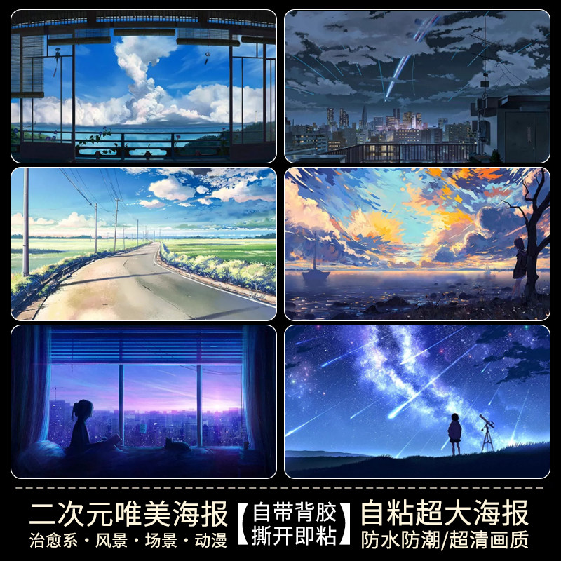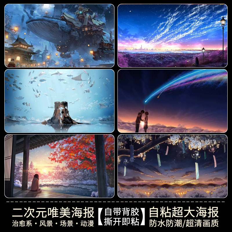 动漫海报墙贴纸自粘超大唯美风景二次元装饰卧室学生宿舍壁纸贴画