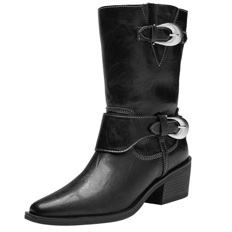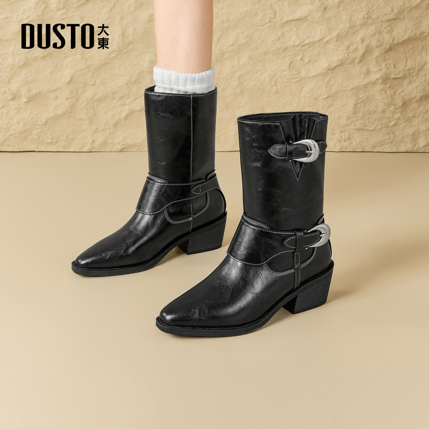 大东尖头堆堆短靴女2025新款秋冬加绒西部牛仔骑士靴子切尔西女靴