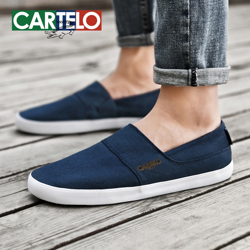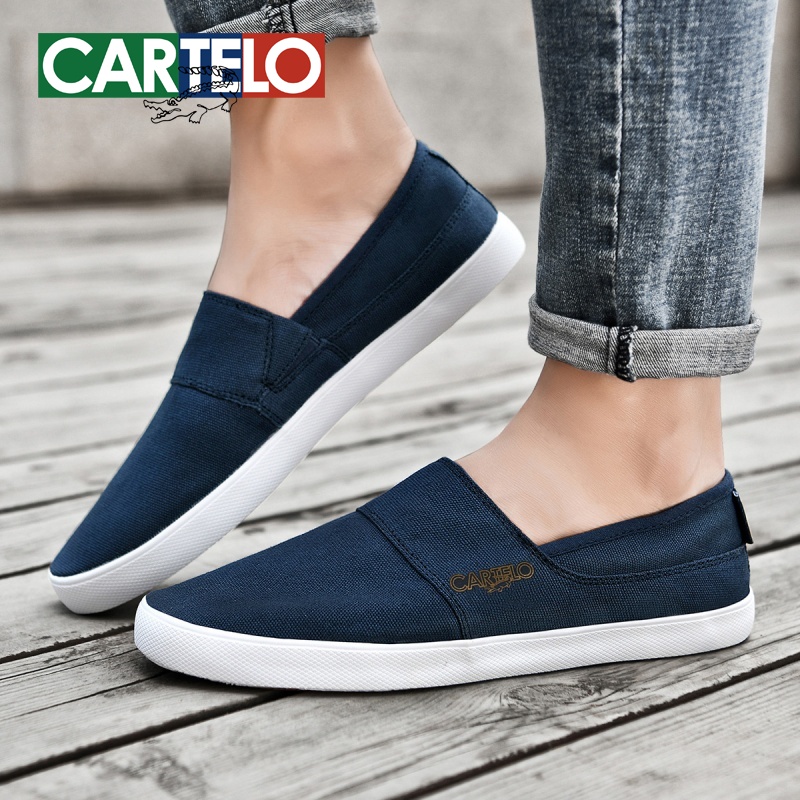 卡帝乐鳄鱼帆布鞋秋季新款休闲一脚蹬男鞋男士轻便潮流布鞋蓝色