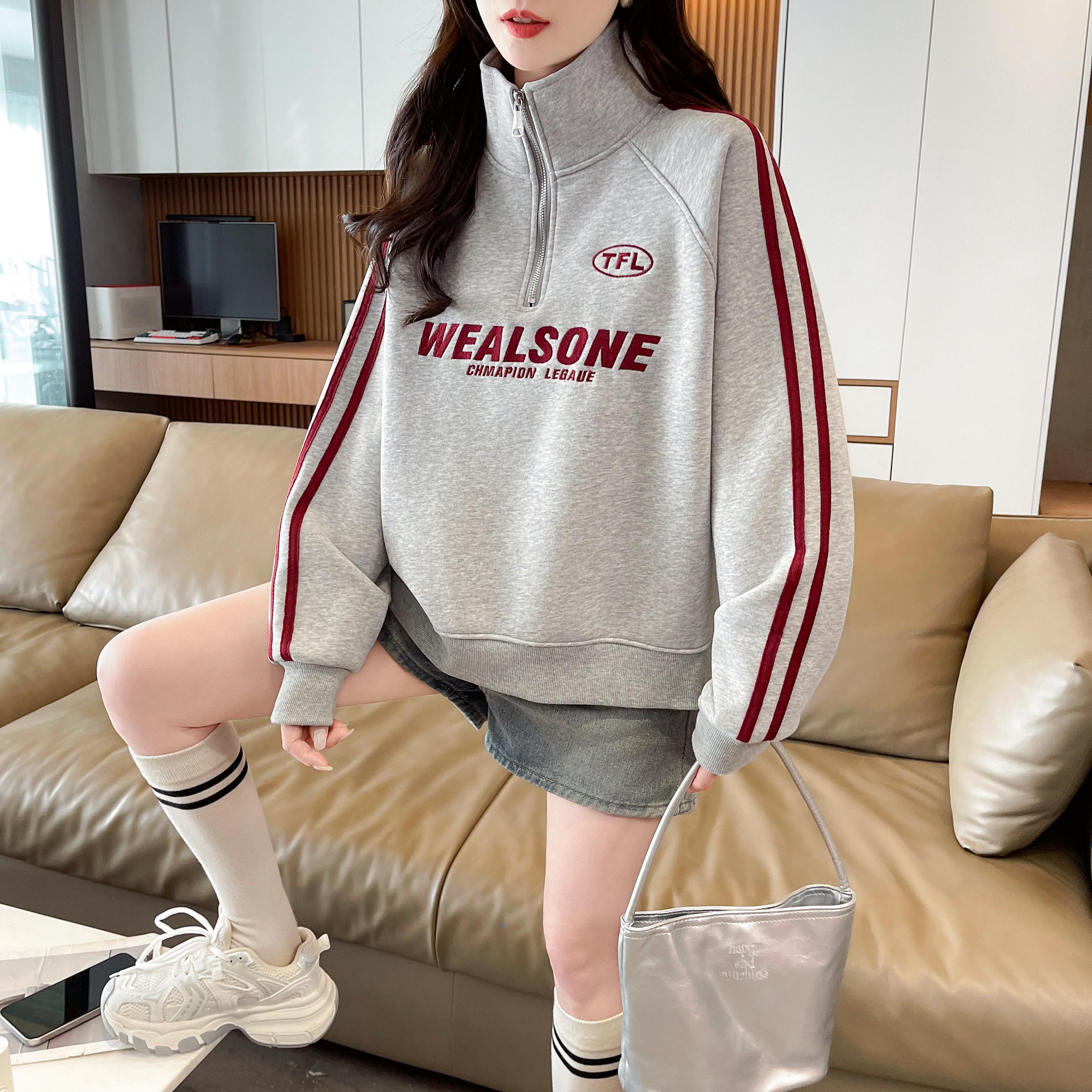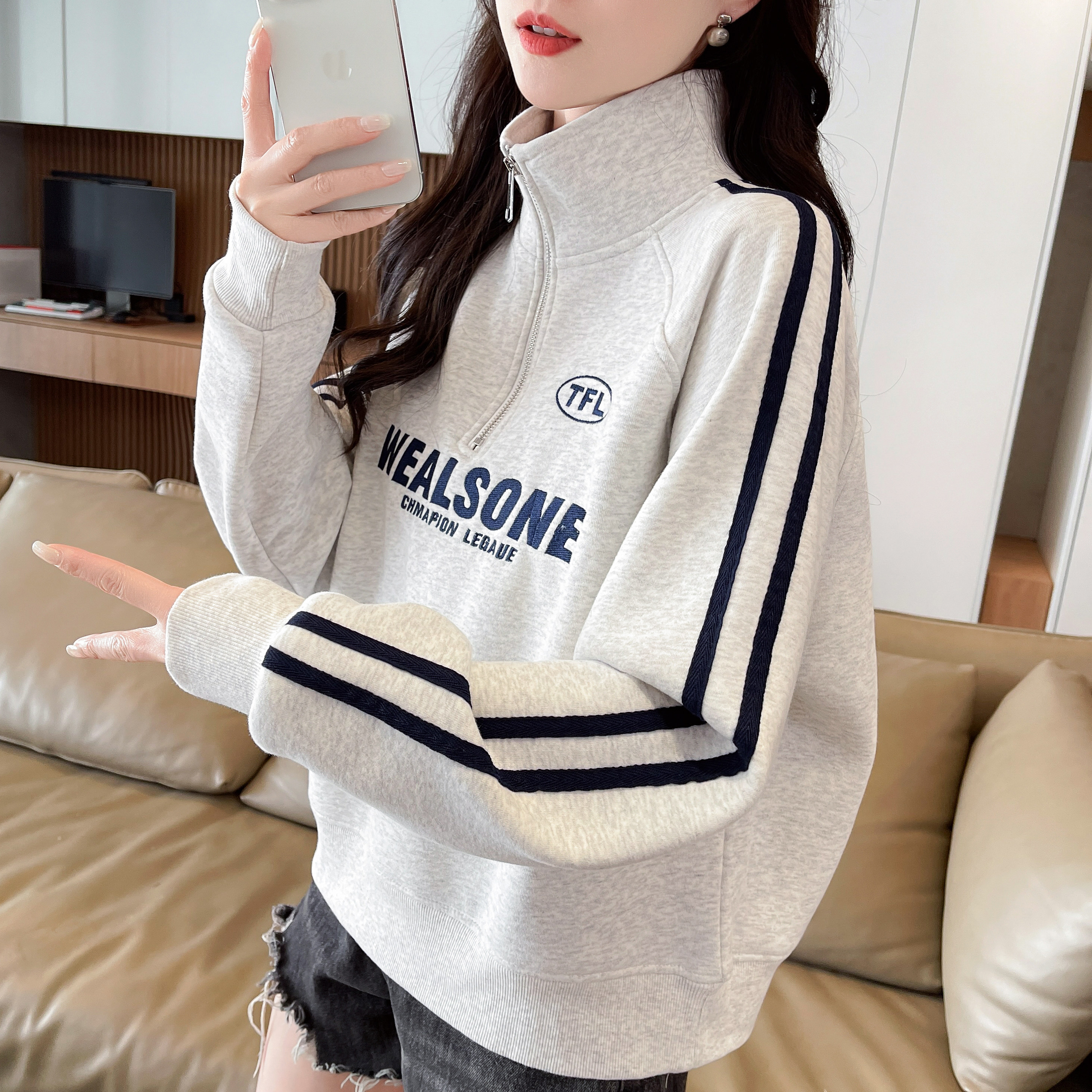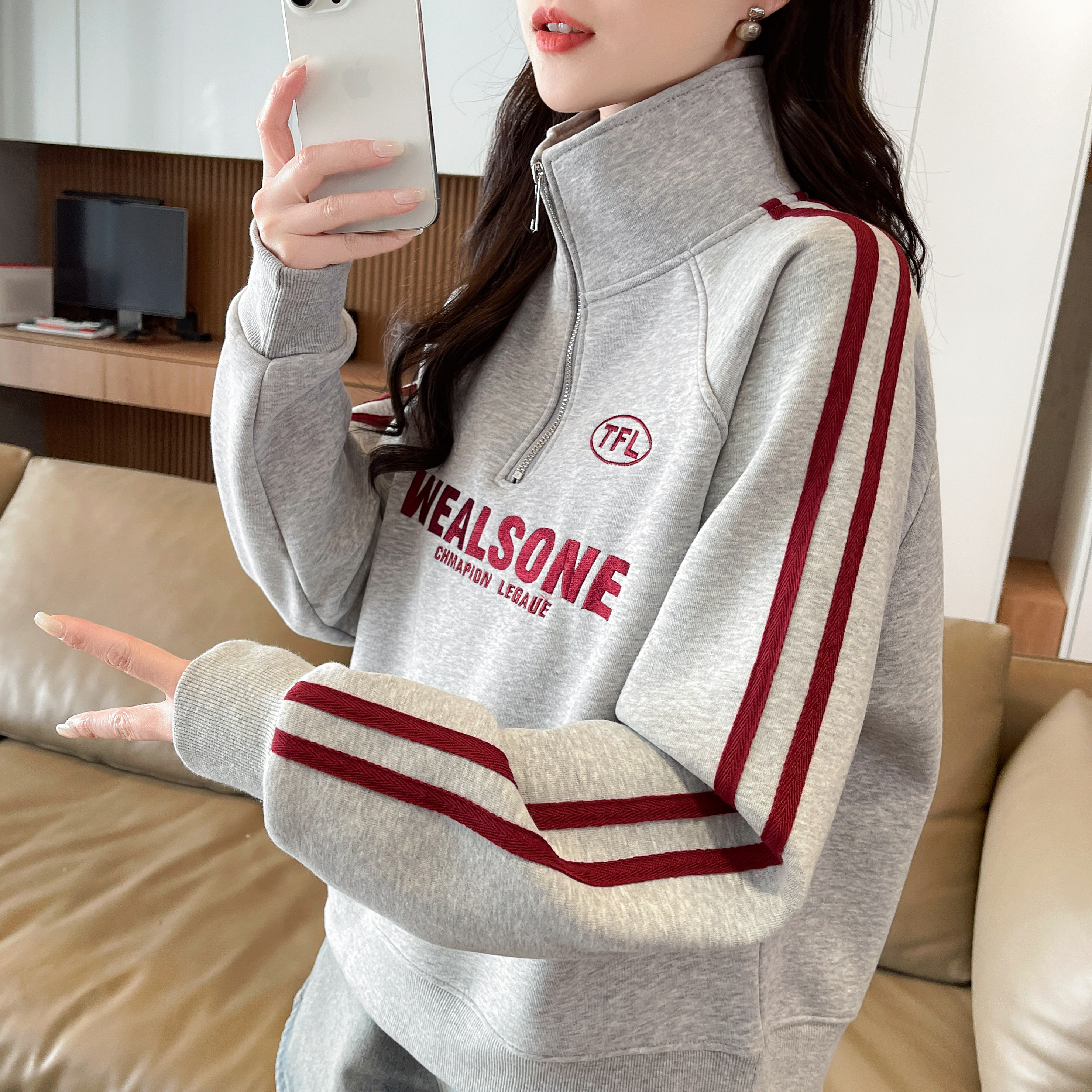半高领卫衣女加绒加厚宽松