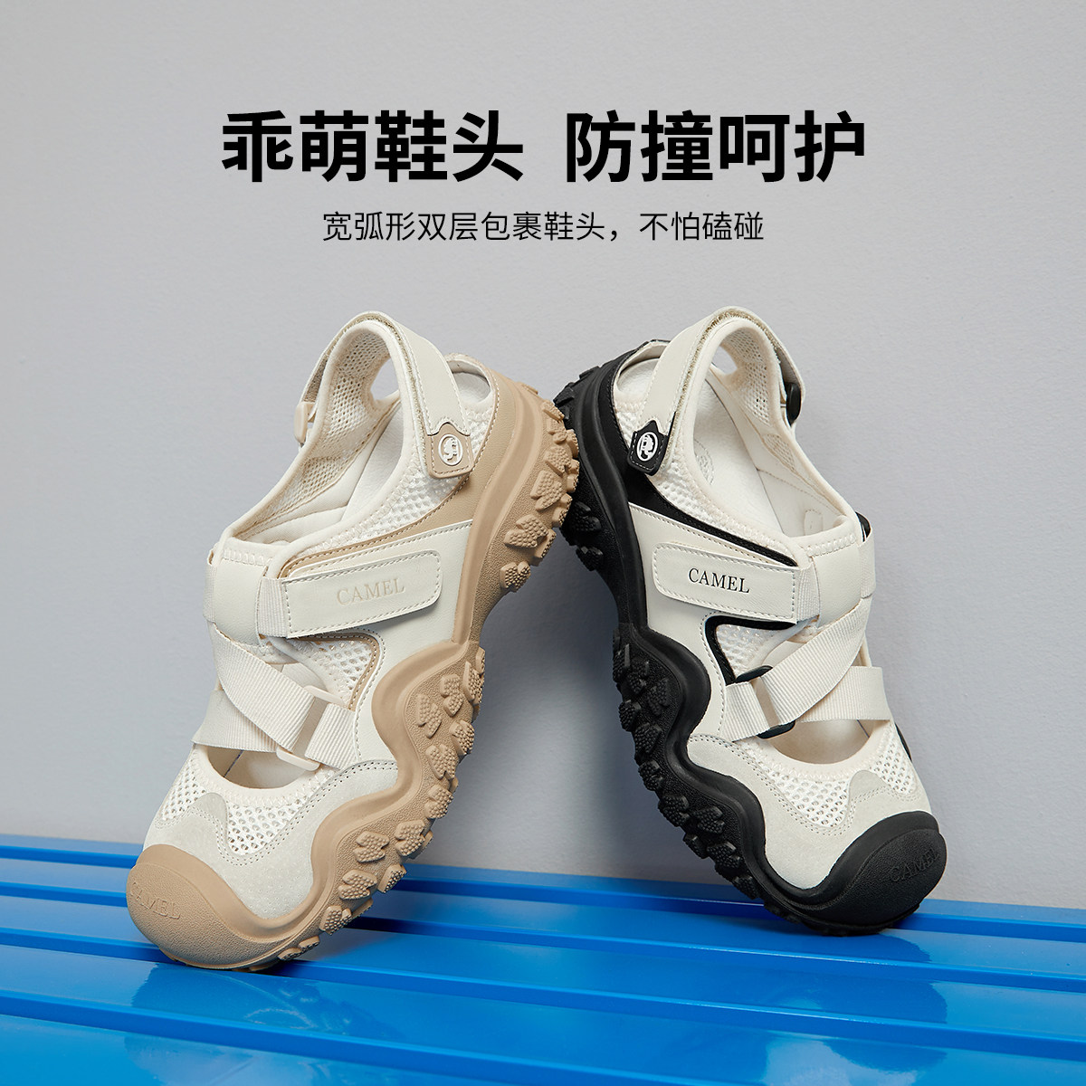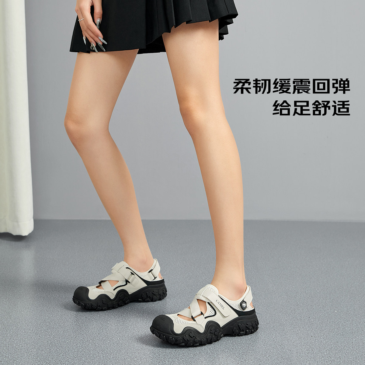 骆驼女鞋丑萌鞋女2025夏新款休闲户外登山鞋松紧带溯溪鞋运动凉鞋