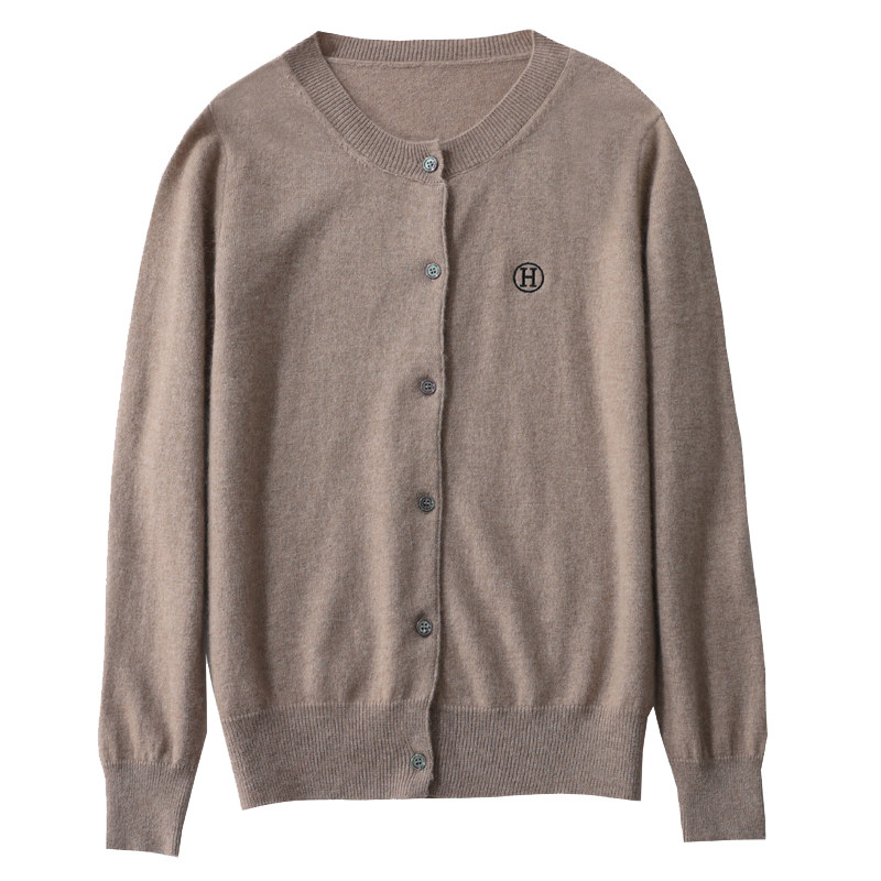 100%纯山羊绒圆领毛衣开衫外套