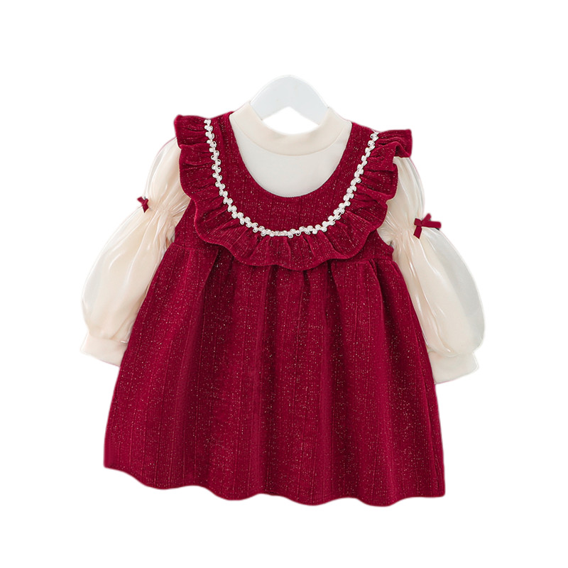 女童春秋连衣裙洋气儿童裙子婴儿礼服红色公主裙一岁宝宝秋装套装