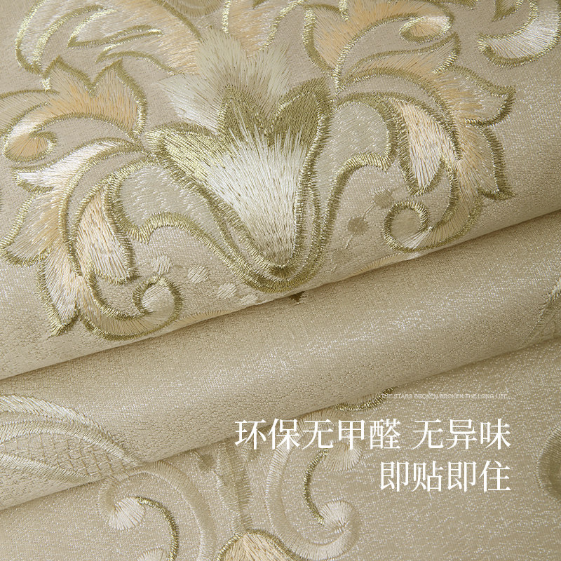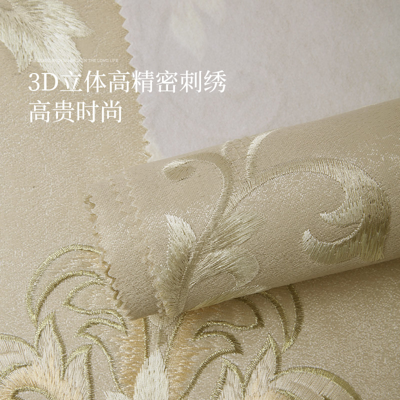 高档刺绣墙布现代简约卧室温馨3D立体客厅电视背景墙欧式无缝壁布