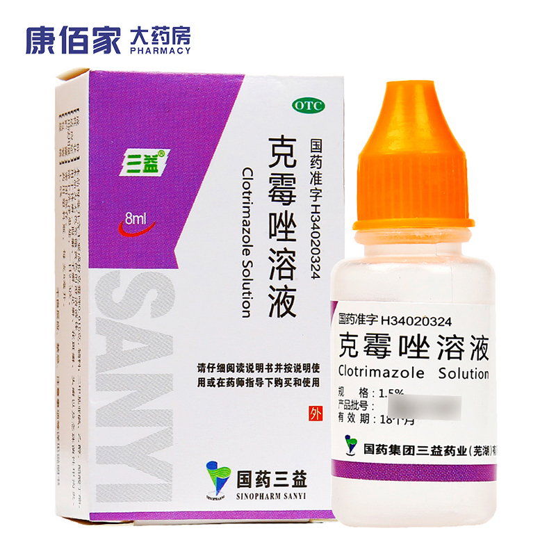 三益克霉唑溶液 8ml股癣手癣足癣体癣甲沟炎 康佰家大药房