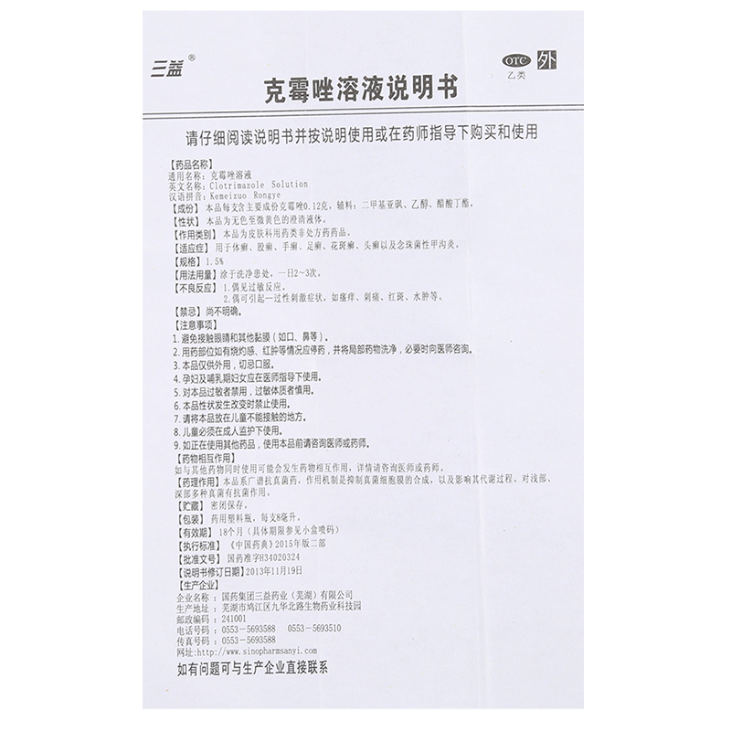 【三益】克霉唑溶液1.5%*8ml*1瓶/盒股癣手癣足癣体癣