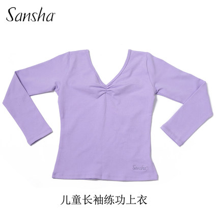 Sansha法国三沙儿童长袖芭蕾舞蹈服V领上衣纯棉练功服基训T恤衫