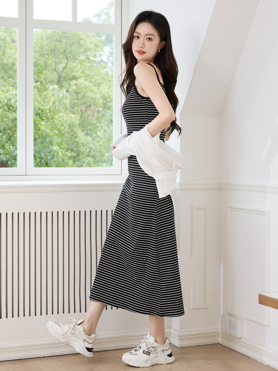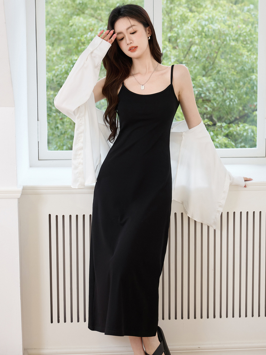 中长款黑色吊带连衣裙女夏2025新款纯棉背心长裙百搭修身显瘦裙子
