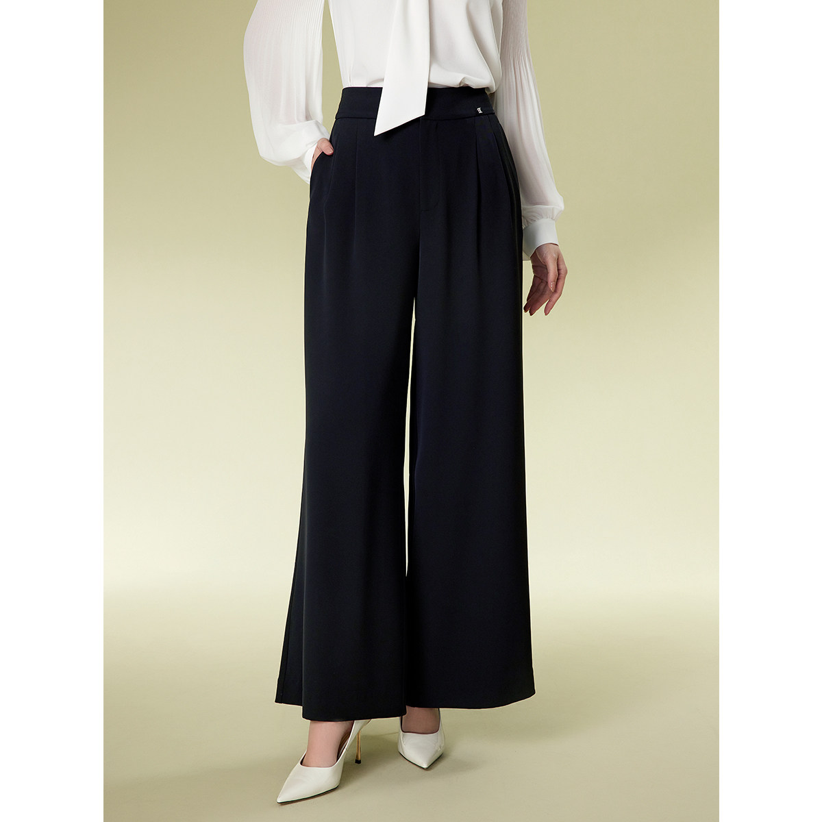 【休闲质感阔腿裤】BBLLUUEE粉蓝衣橱2025秋装新款通勤黑色长裤女