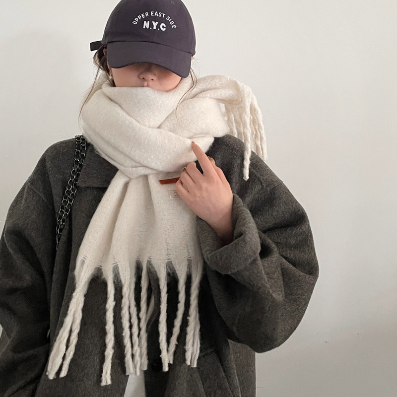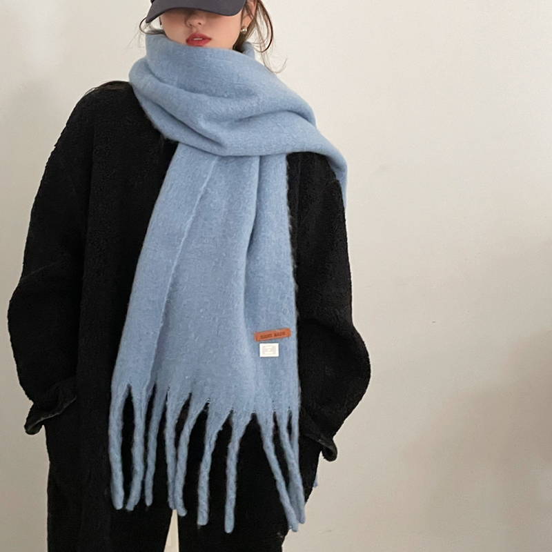 雾霾蓝加厚蓝色系围巾女冬季2025新款韩系氛围感百搭披肩两用围脖