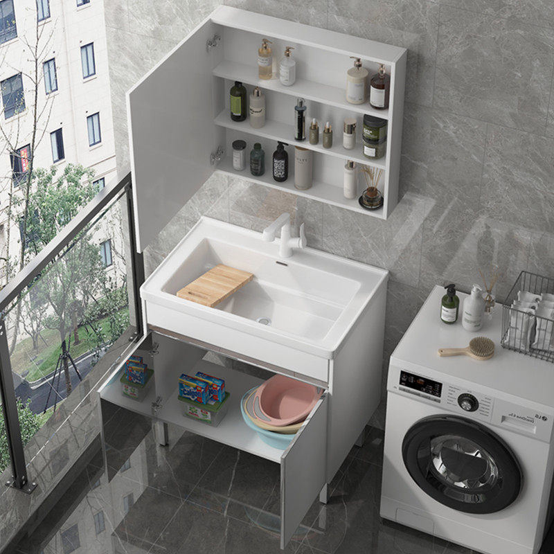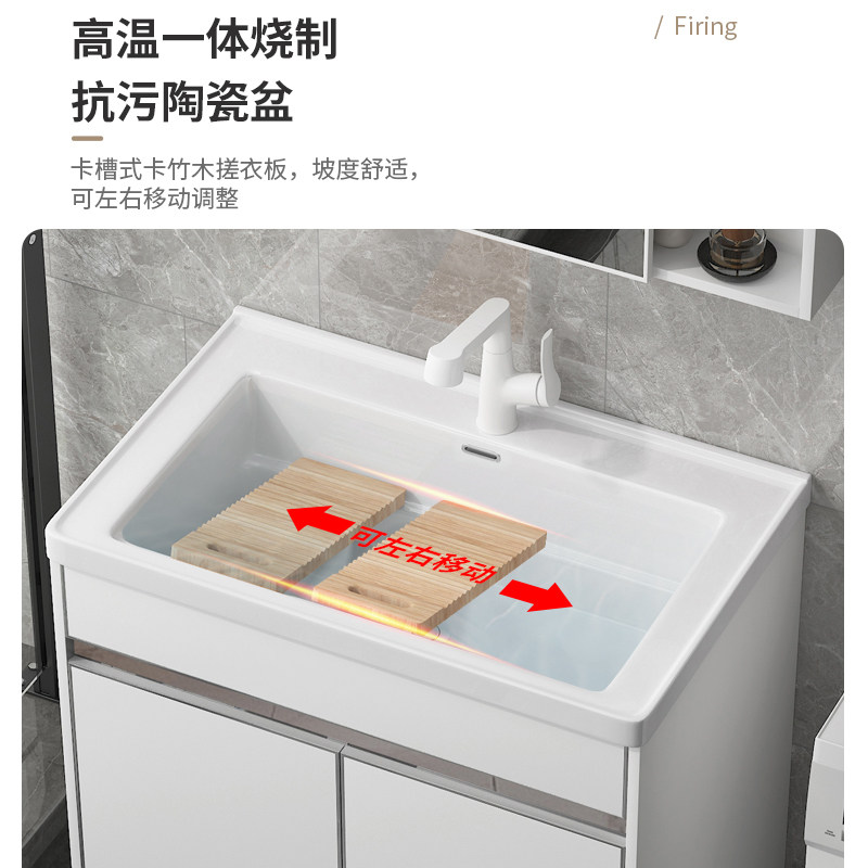 阳台洗衣池陶瓷一体台盆大号洗手盆户外不锈钢洗衣柜带搓衣板水槽