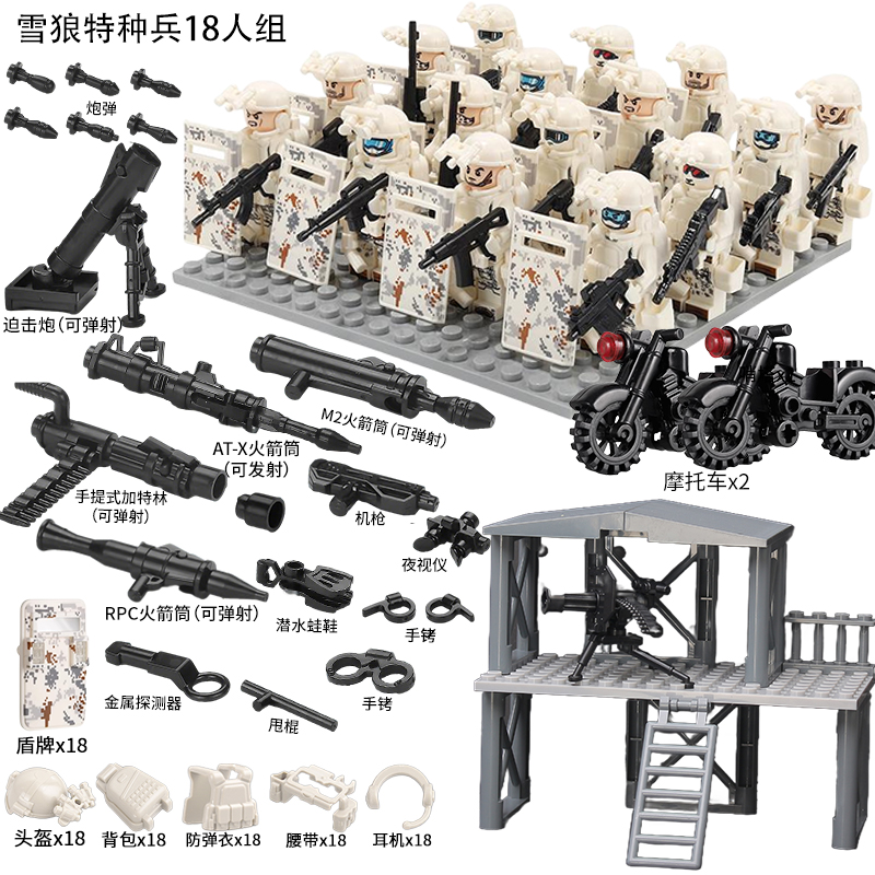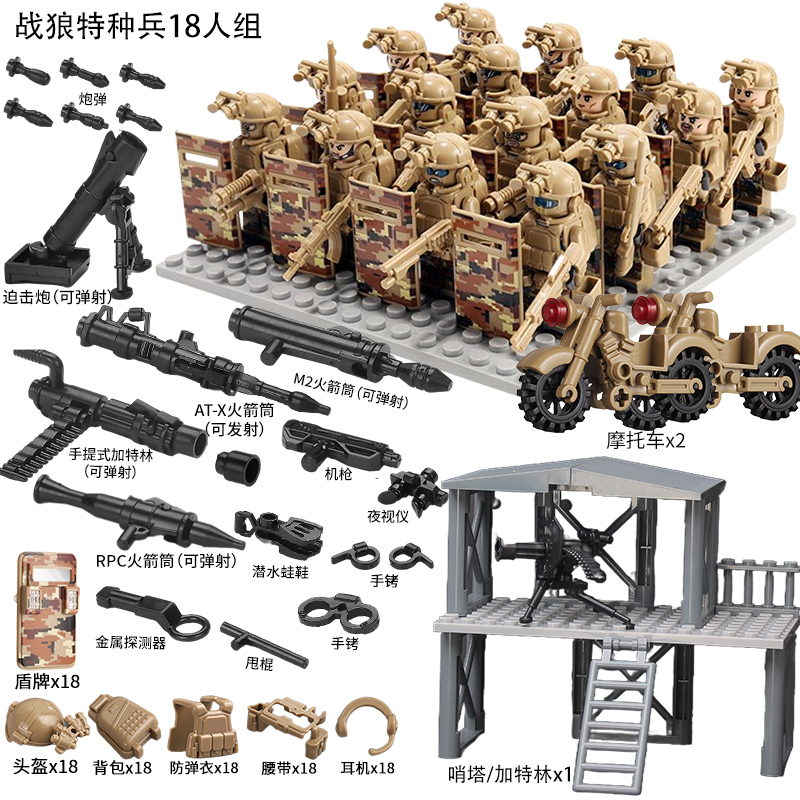 特种兵军事积木人仔特警战狼士兵哨塔适用乐高拼装益智玩具男孩子