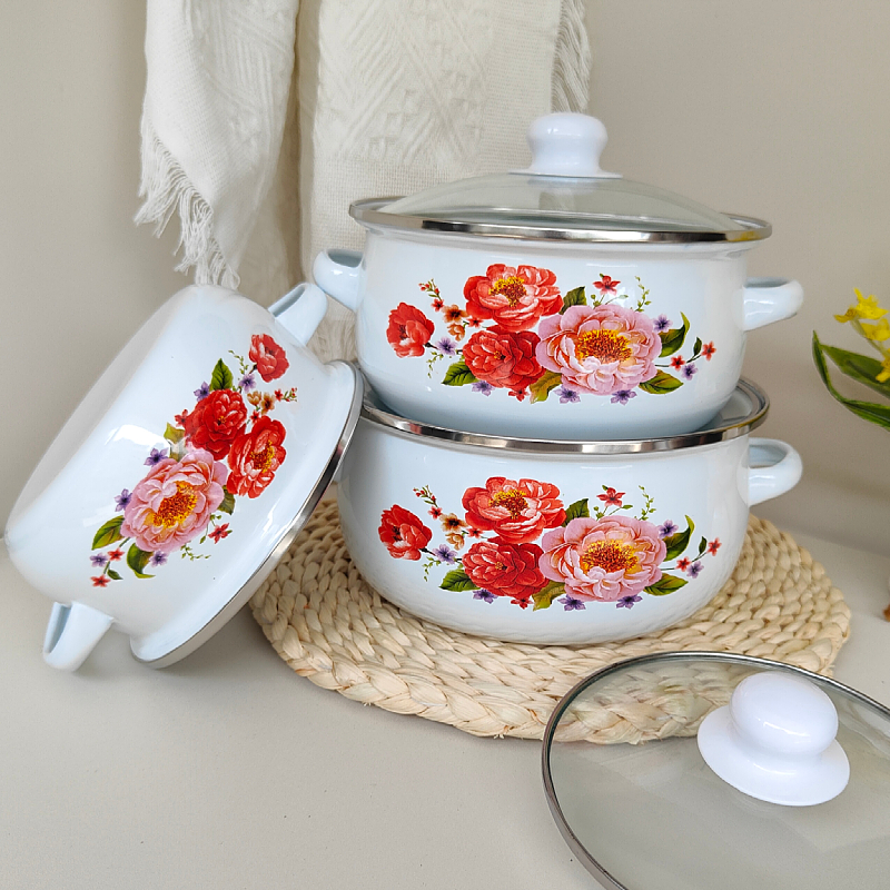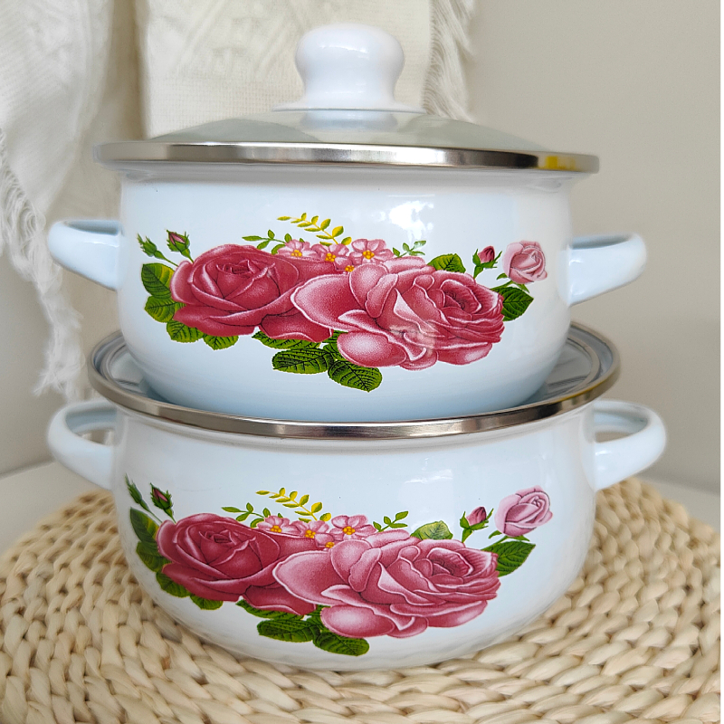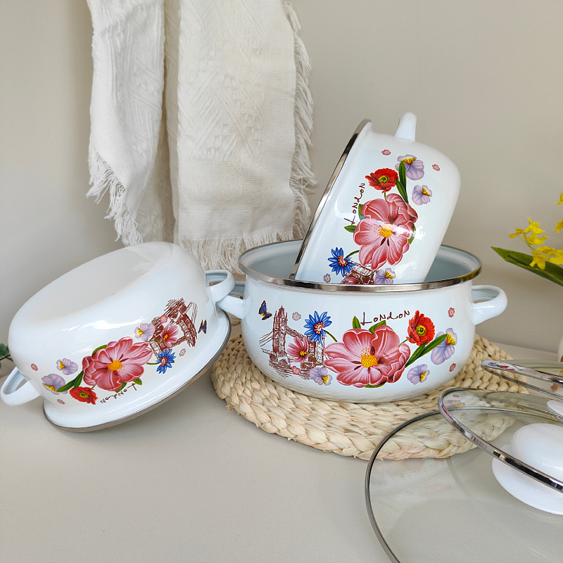 珐琅搪瓷双耳汤锅炖锅家用平底锅电磁炉明火加热装猪油锅泡方便面