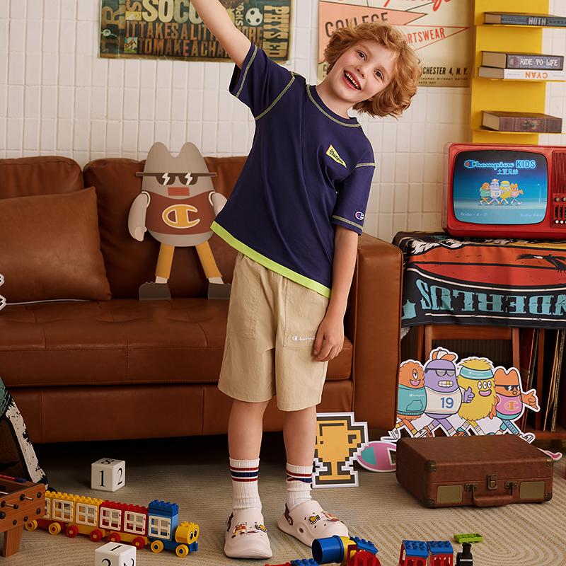 Champion冠军男童装25夏季新款潮流经典休闲百搭运动球衣短袖T恤