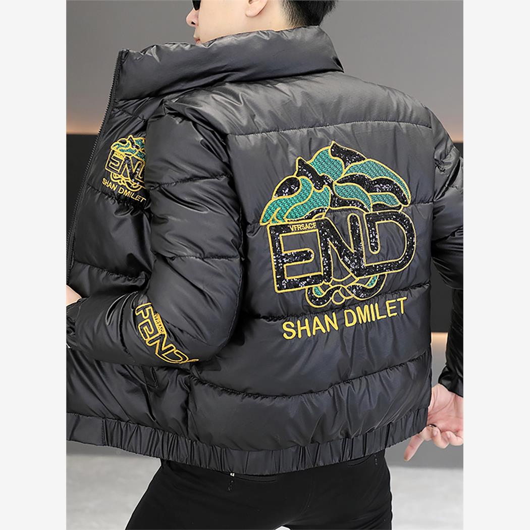 冬季加棉飞行员夹克男士潮牌刺绣棒球服短款印花外套卡通棉服棉衣